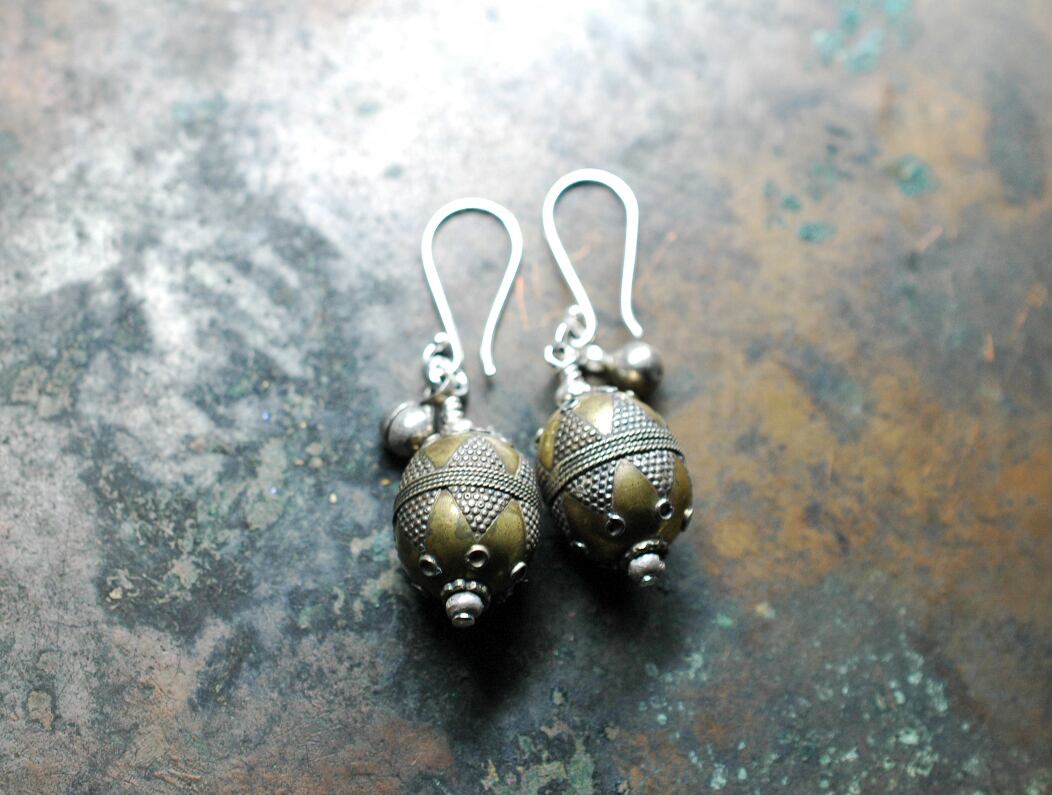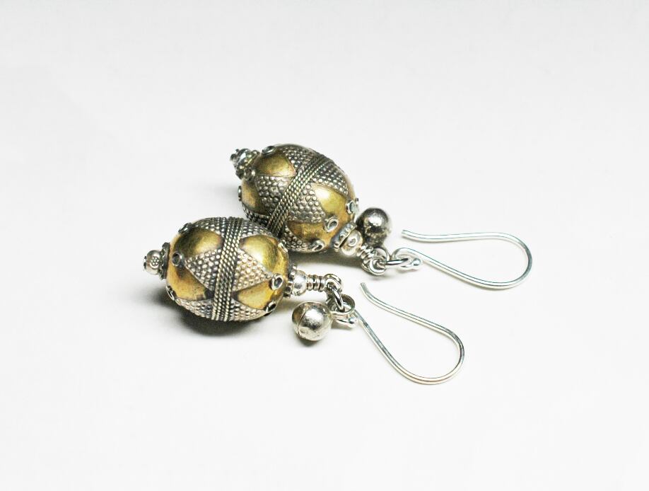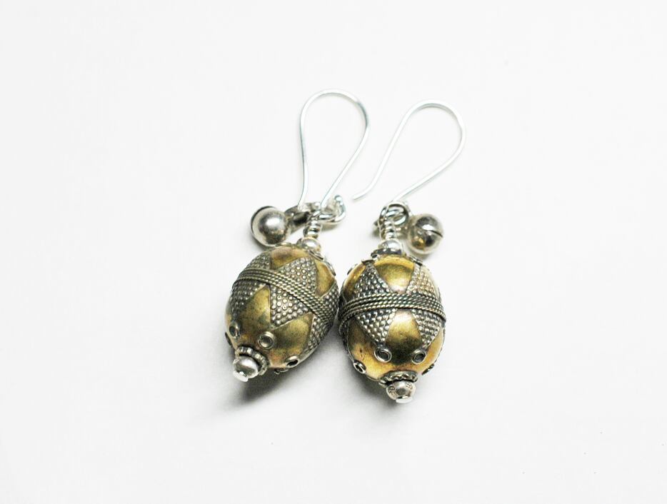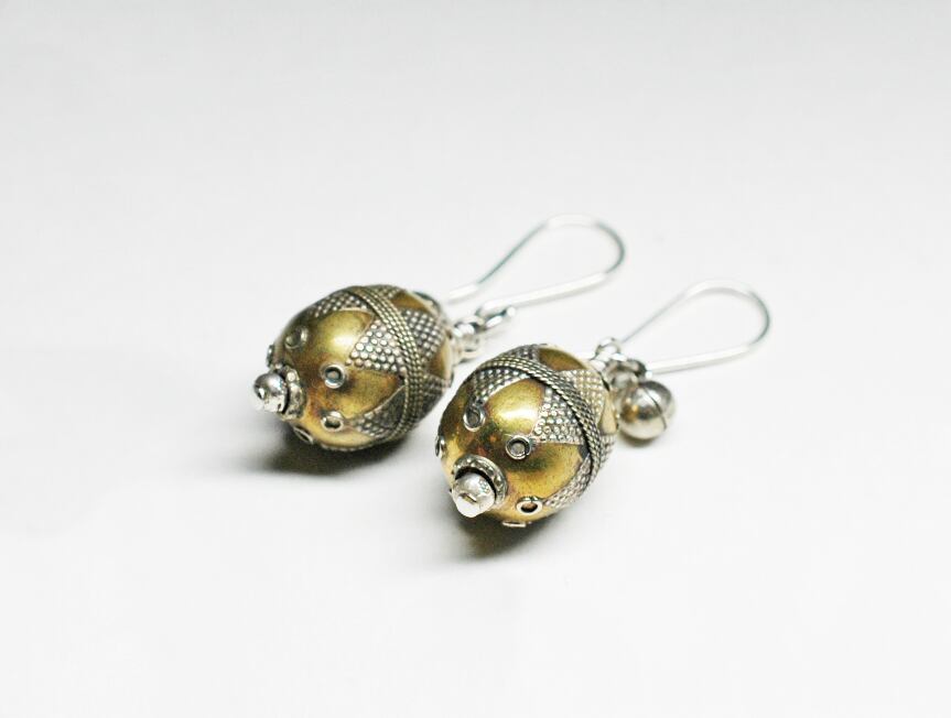 トルクメニスタンから届いたメタルビーズに鈴を一粒つけたピアスです。