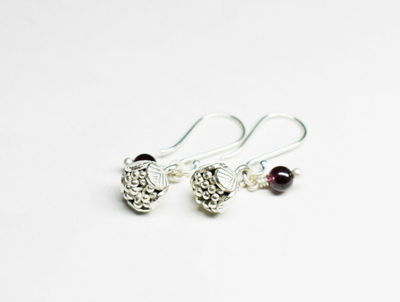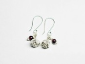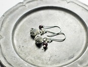 コロンとしたカレンシルバーチャームと、丸いガーネットを繋いだピアスです。