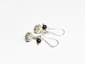 コロンとしたカレンシルバーチャームと、丸いガーネットを繋いだピアスです。