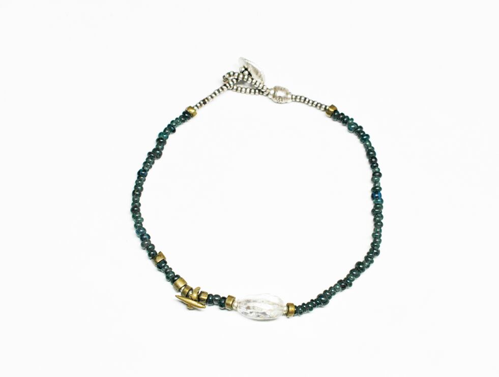 インディゴブルービーズとoldオリッサブラス、一粒古代水晶のブレス
