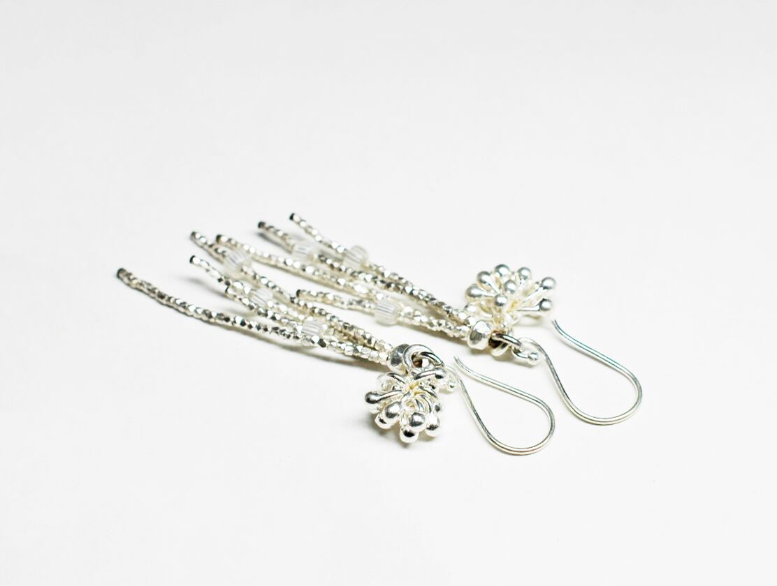 新雪の煌めきのようにキラキラと輝くピアスです。