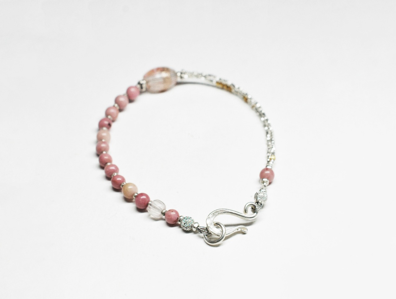 少しくすんだピンク色が是非大人女性に身に着けていただきブレスです。