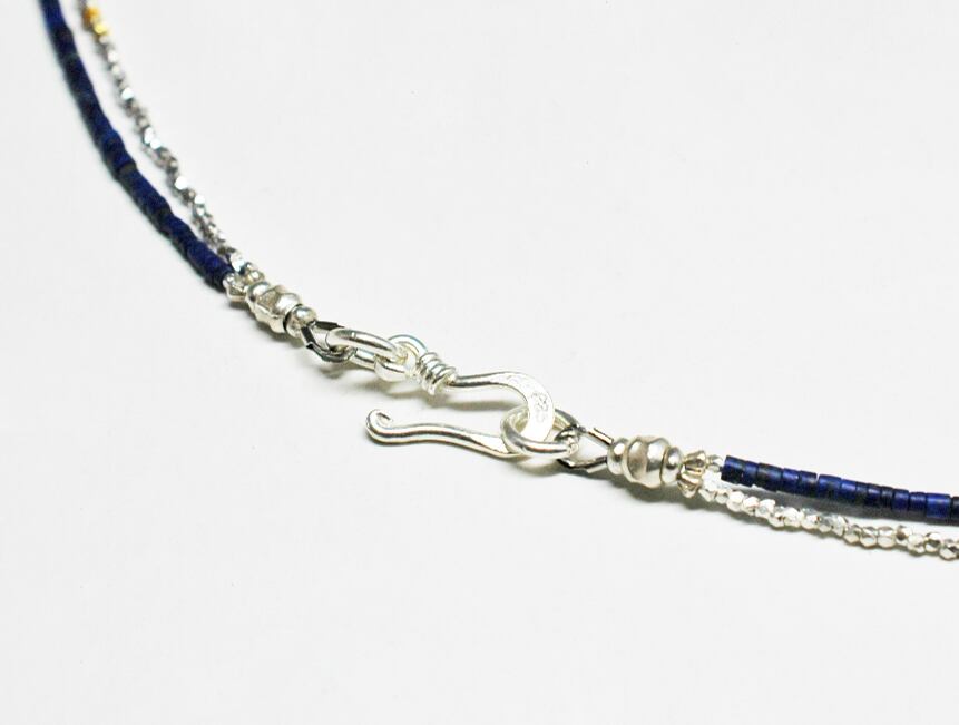 小さなラピスラズリと、キラキラとしたカレンシルバービーズを繋げた2連のネックレスです。