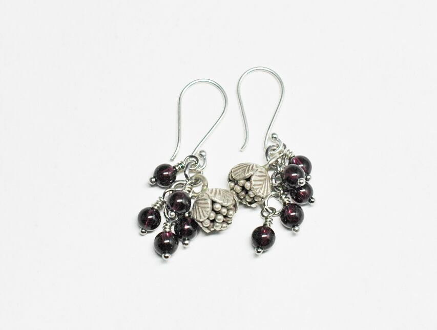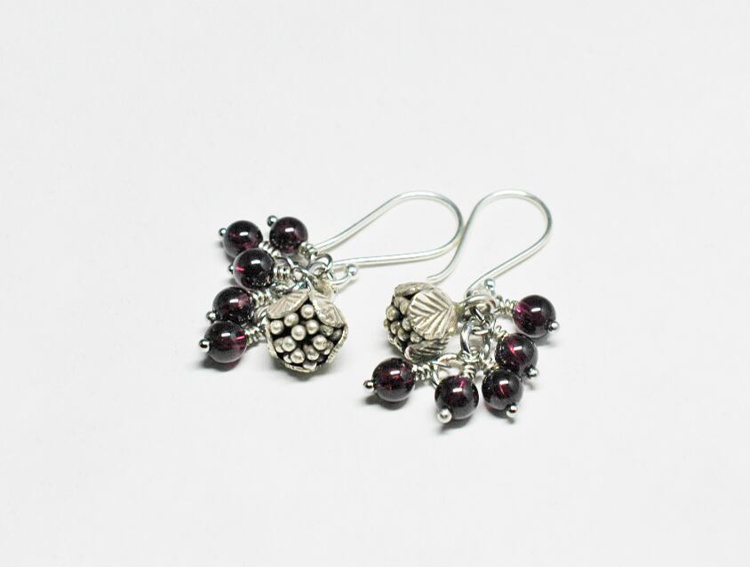 たわわなガーネットとコロンと丸いお花カレンシルバーのピアス