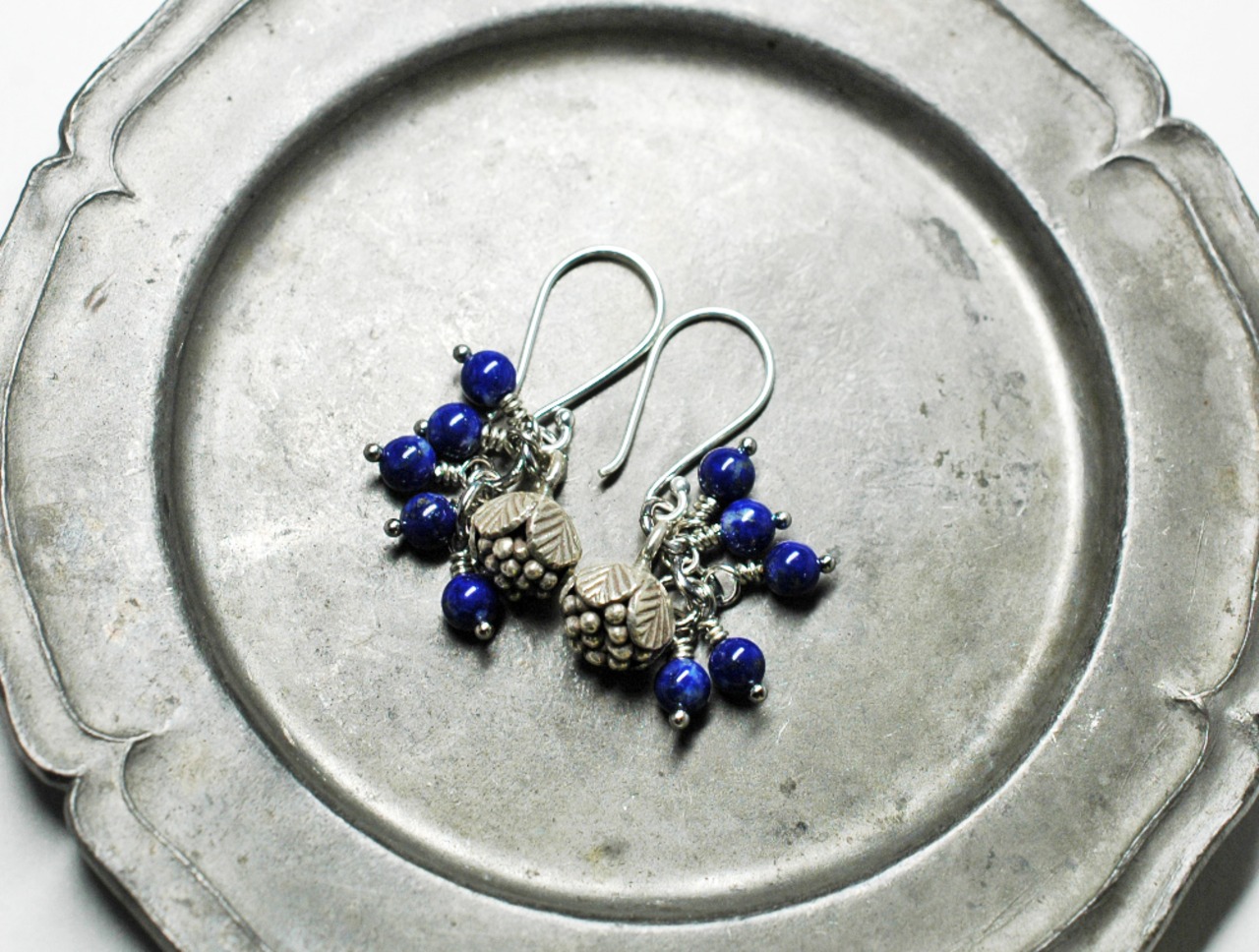 たわわなラピスラズリとコロンと丸いお花カレンシルバーのピアス