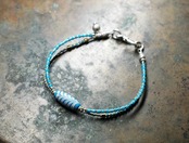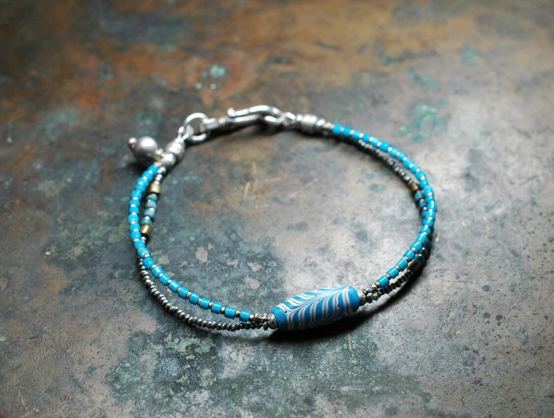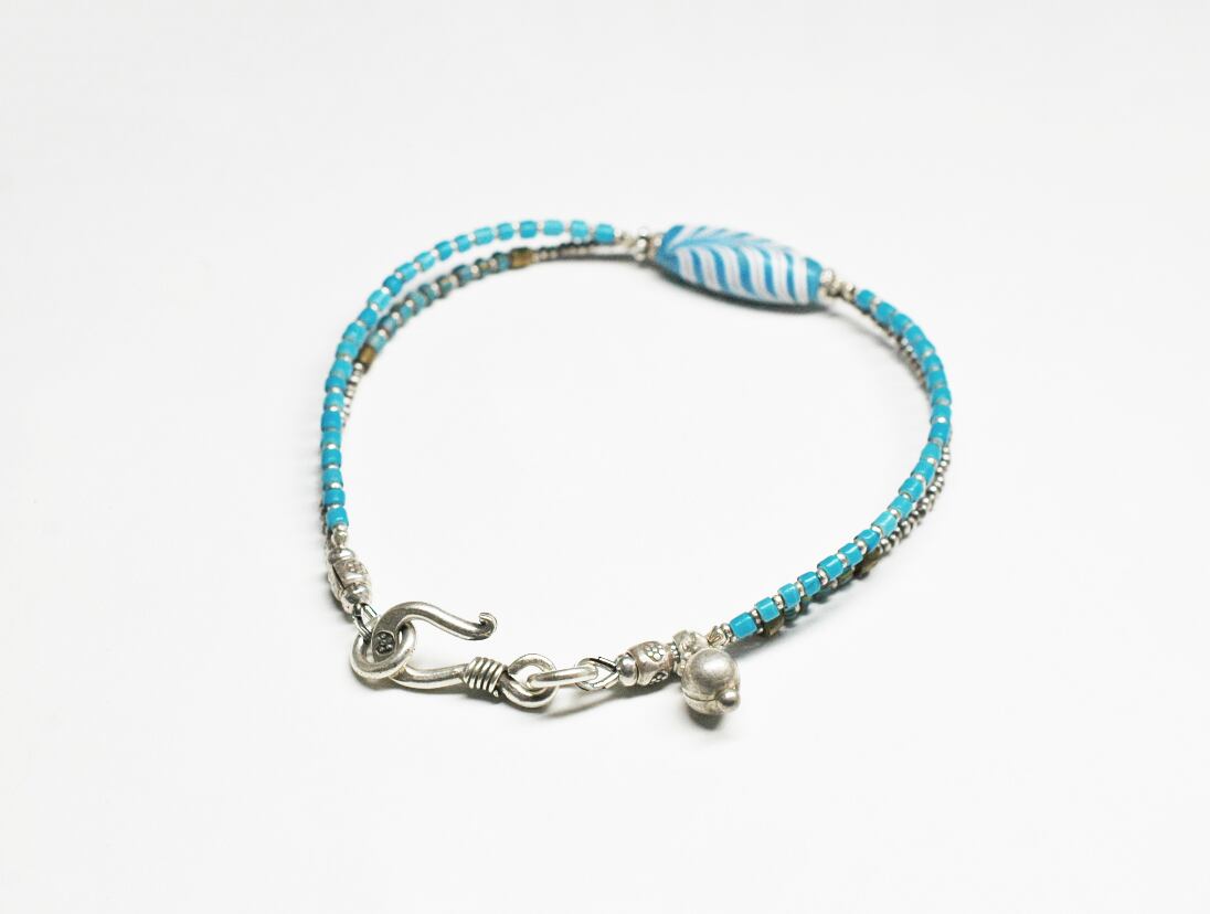 アンティークのフェザービーズと、小さなターコイズブルーのホワイトハーツ、小さなカレンシルバーで繋いだブレスです。