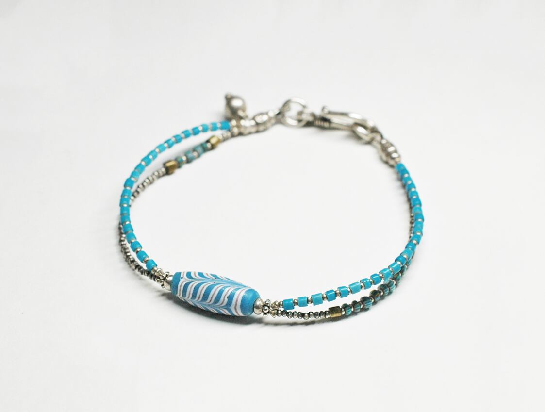 フェザービーズとホワイトハーツのターコイズブルーブレス