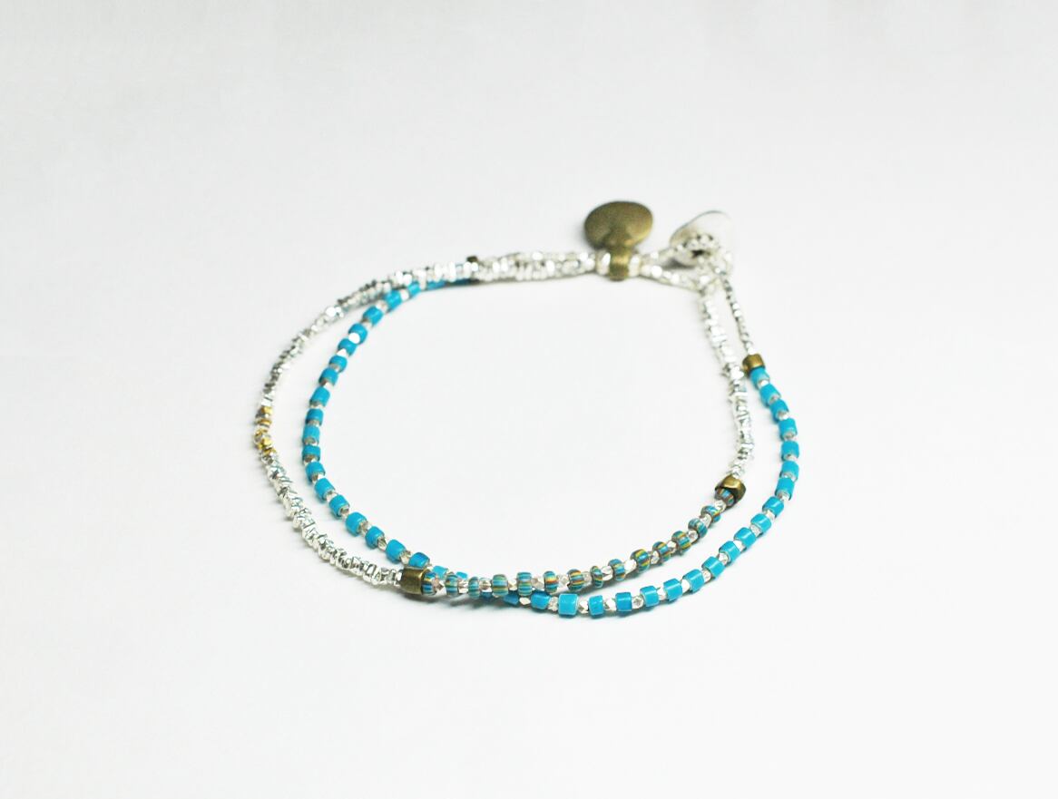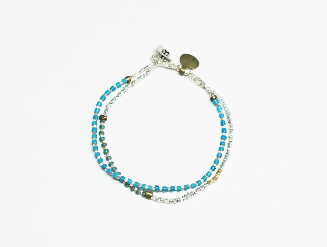ターコイズブルーのホワイトハーツとさざれ型のカレンシルバーを繋いだ2連ブレスです。
