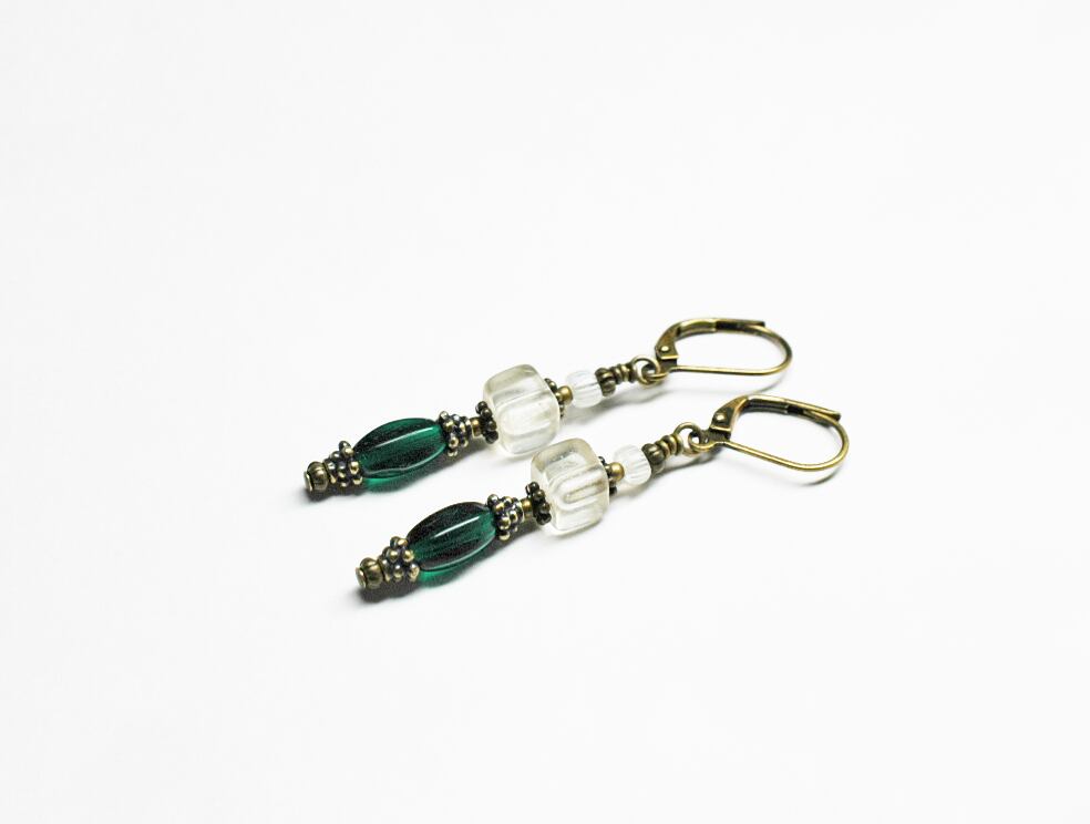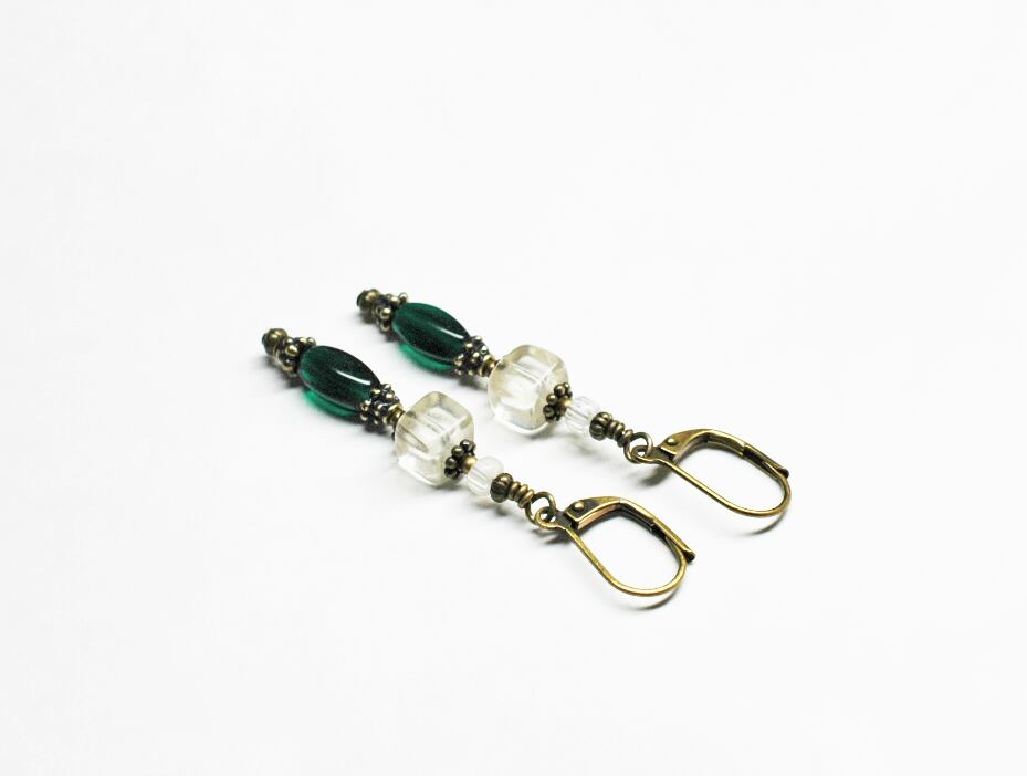 グリーンとクリアのビーズが清楚な雰囲気ですが、アンティークゴールドカラーでまとめているのでちょっとゴシックな感じもあります!