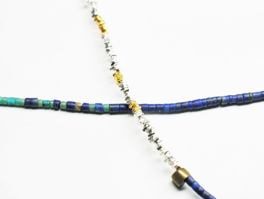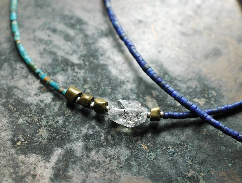 ハーキマーダイヤモンド、さざれカレンシルバーとラピス&ターコイズの華奢なネックレス