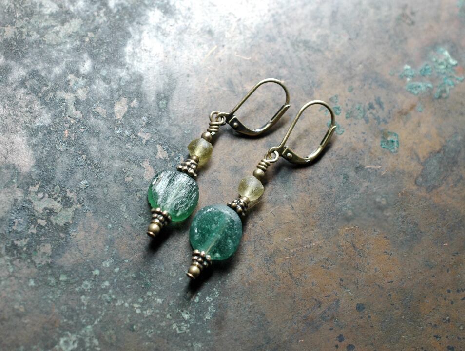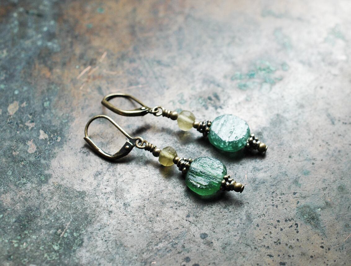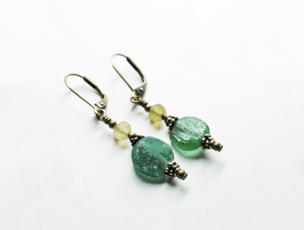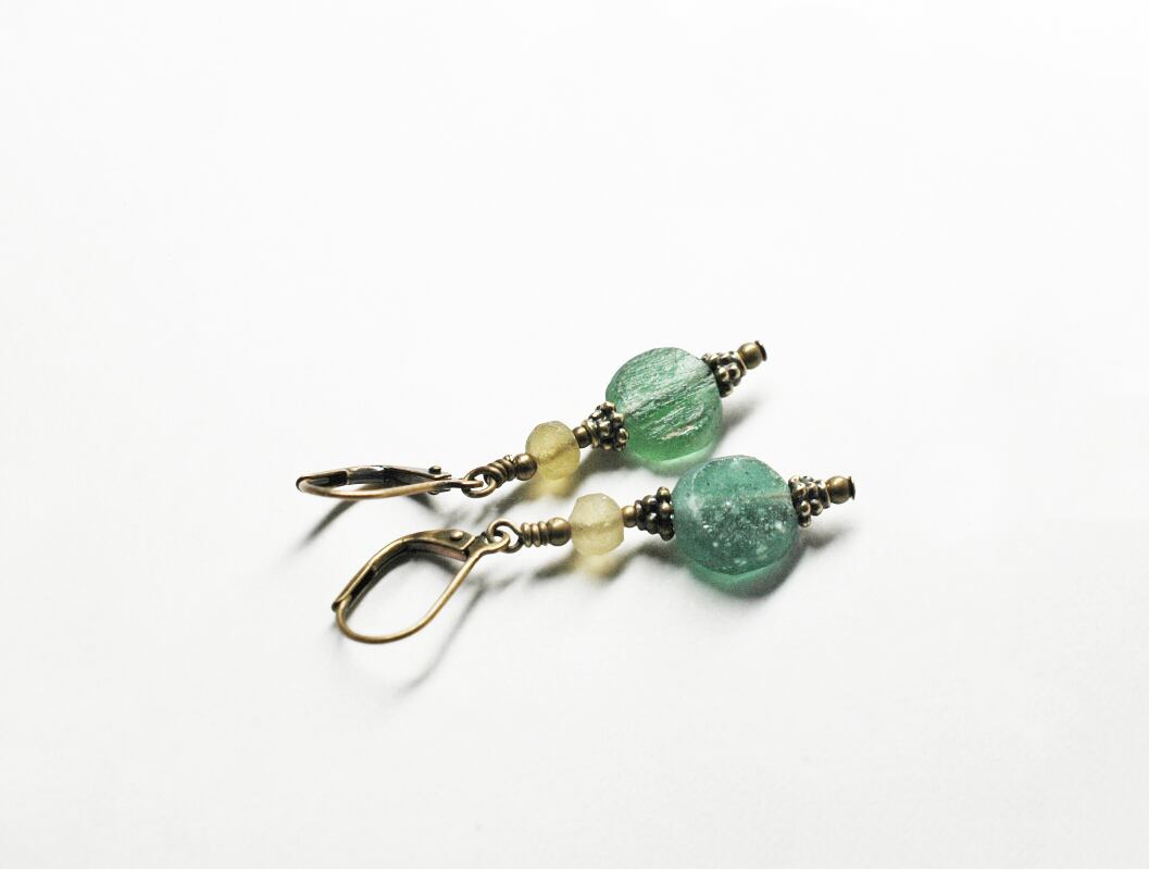 グリーンの扁平丸型のものと、小さな丸い琥珀色のものを使っています。