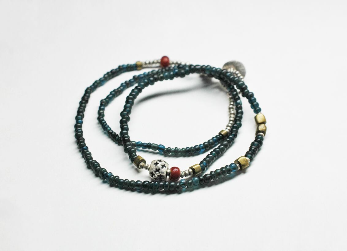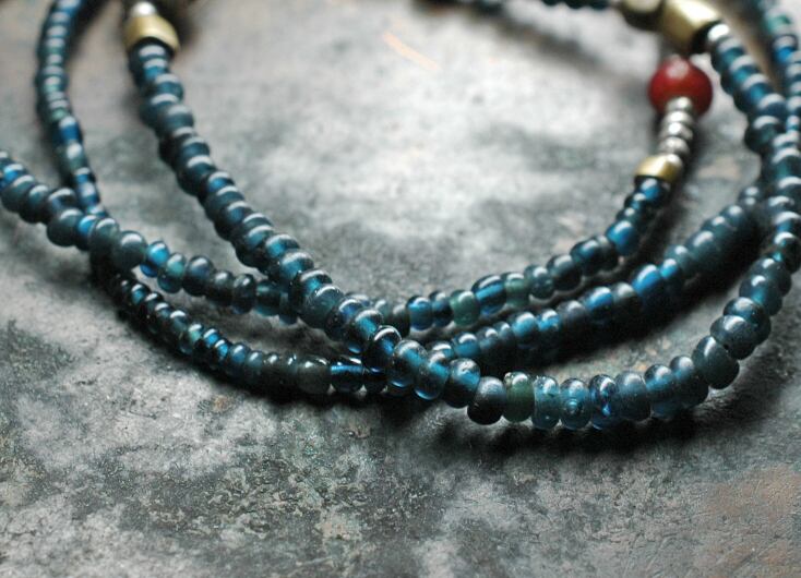 インディゴブルーのビーズはインドパシフィックビーズと呼ばれるアンティークビーズです。