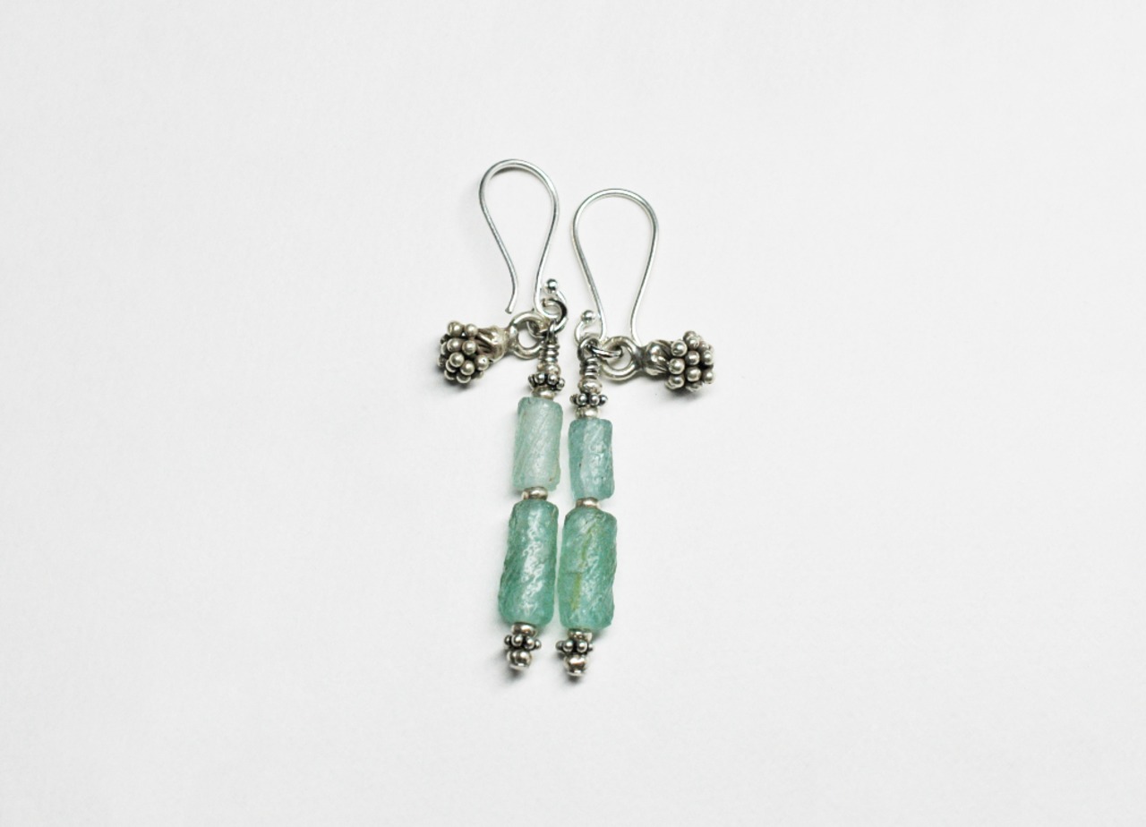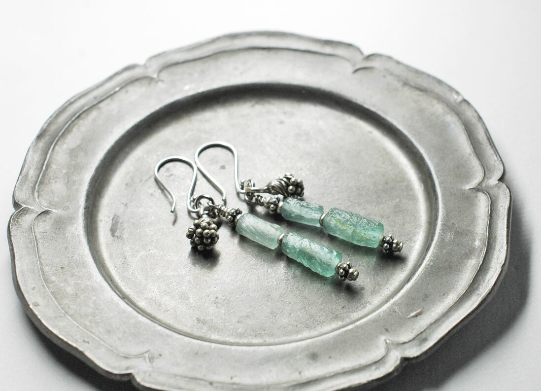 古代ガラスの味わいと、色合いの優しさ、更に可愛らしさも楽しめるピアスです。