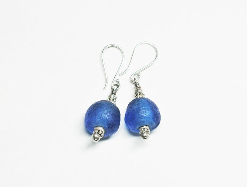 ガーナから届いた再生ガラスビーズを使ったピアスです・