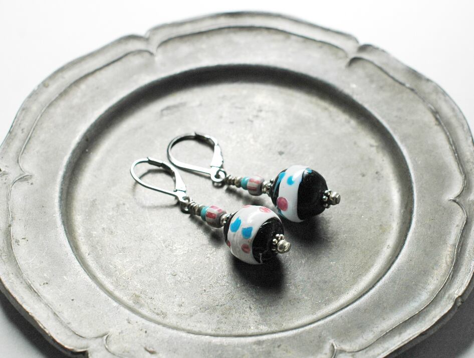 コロンと可愛らしいベネチアのアンティークビーズを繋いだピアスです。