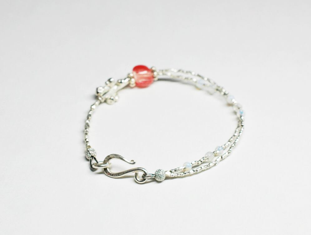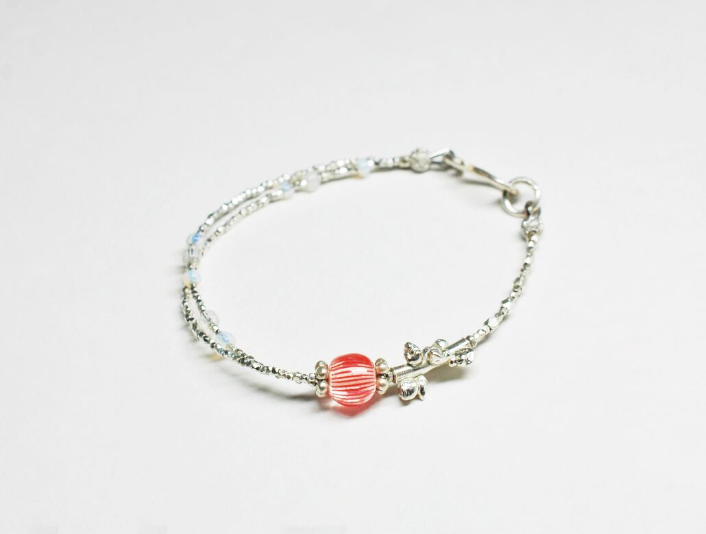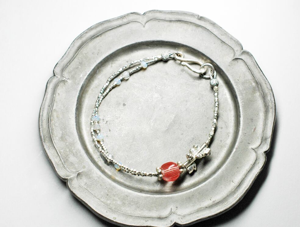 林檎みたいなアンティークビーズと煌めくカレンシルバーのブレス