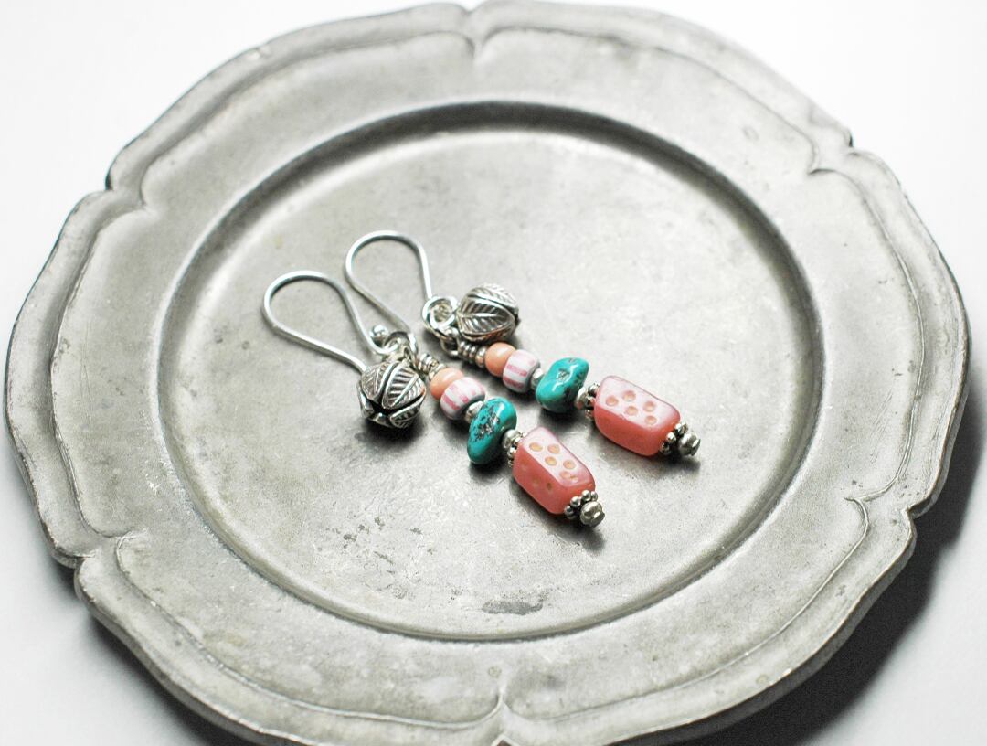 可愛らし色合いですが、アンティークビーズの渋さも楽しめる、シャーベットカラーのピアスです。