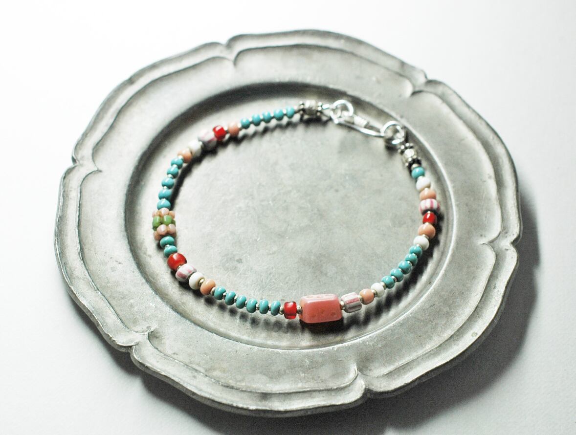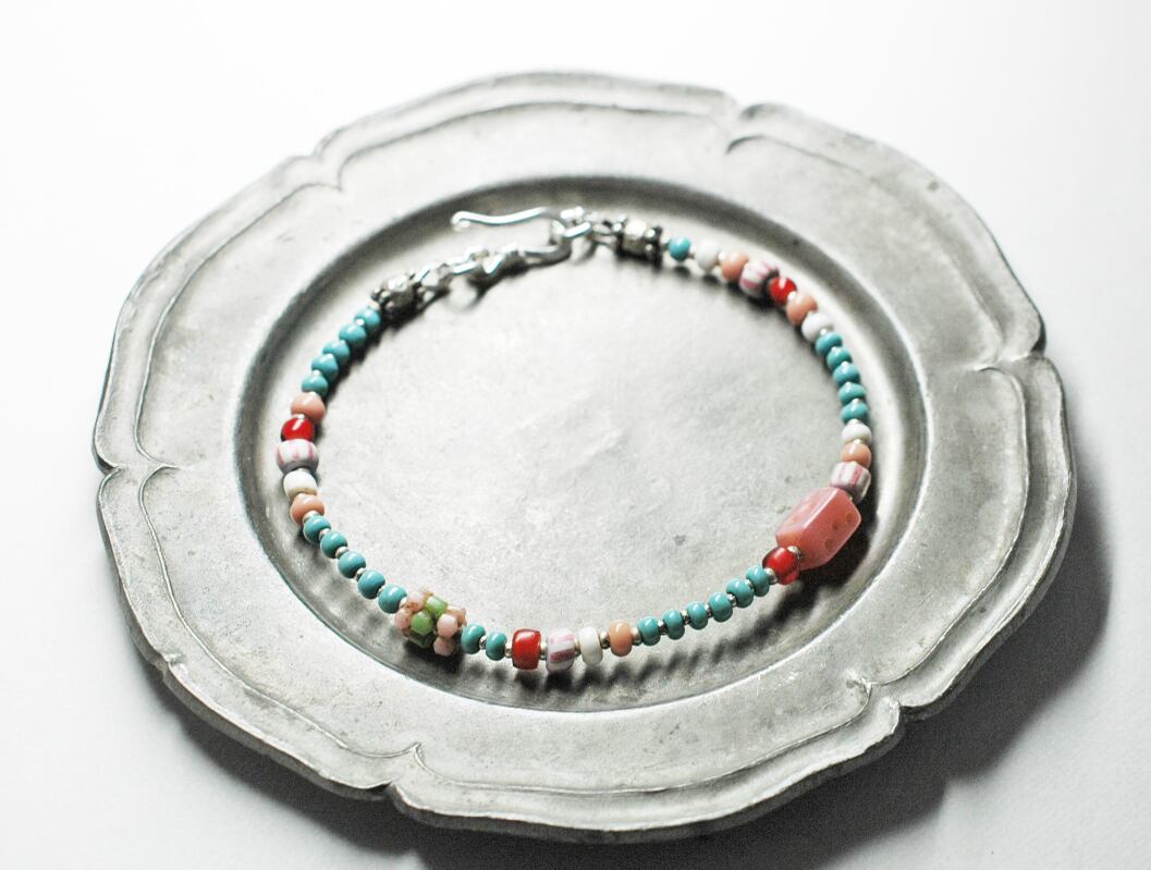 シャーベットカラーが可愛らしくも、オールアンティークのこだわりブレスです。