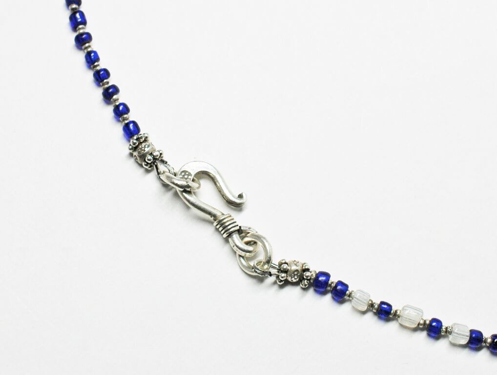 ボタニカルなカレンシルバーと瑠璃色アンティークビーズのネックレス