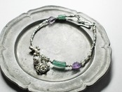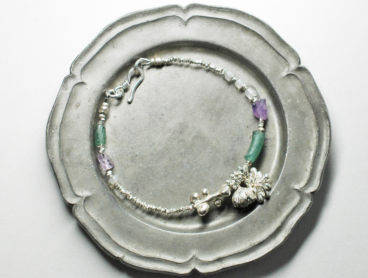 コロンと丸いお花とたわわなカレンシルバーとロマングラス、アメジスト、グーズベリーのブレス