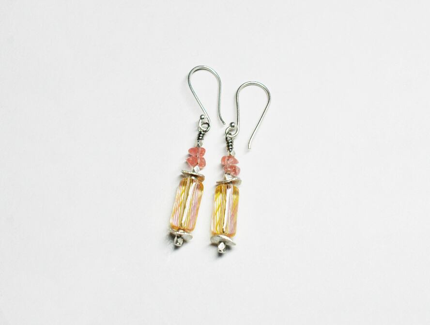 アメリカストライプビーズとチェリークォーツのピアス