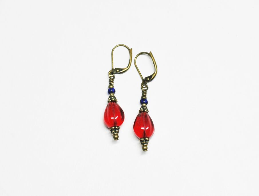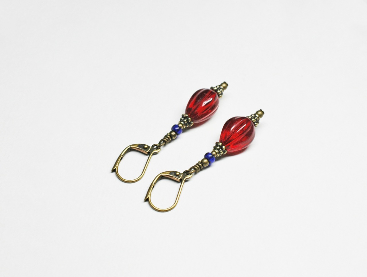 ドイツのヴィンテージガラスビーズと、瑠璃色の小さなビーズを繋いだピアスです。