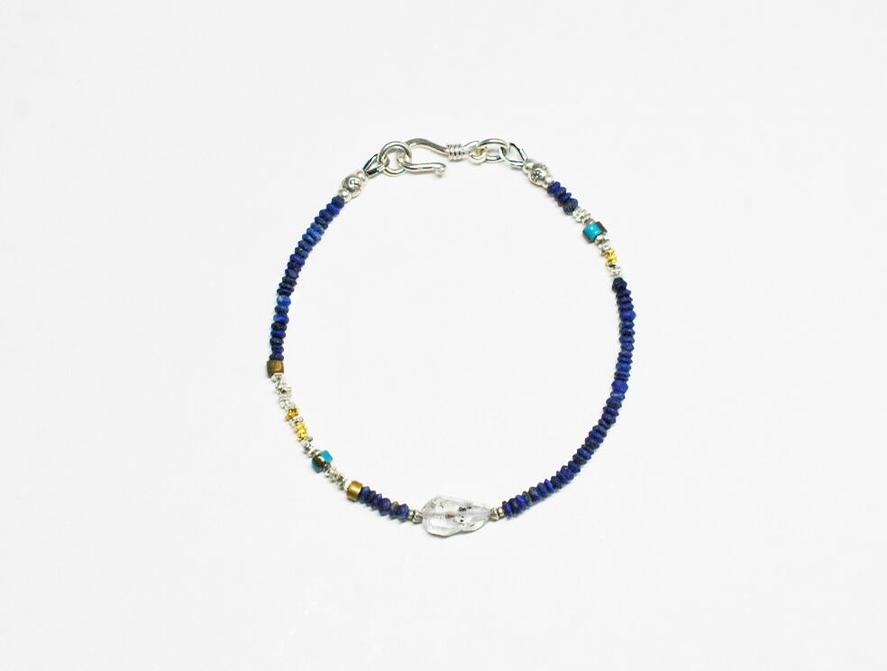 ハーキマーダイヤモンド、小さなラピスラズリと、さざれ型のカレンシルバービーズを繋げたブレスです。