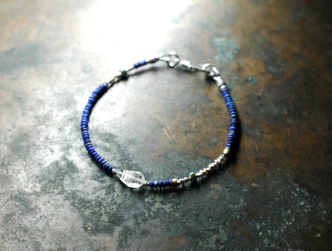 ハーキマーダイヤモンド、ラピスとさざれカレンシルバーの華奢なブレス