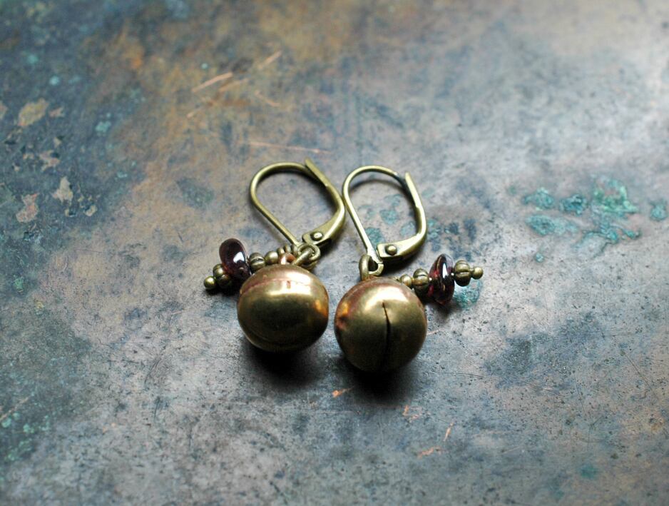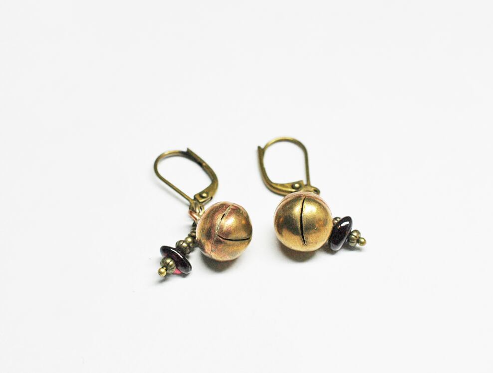 タイから届いた鈴と、ガーネットを繋いだピアスです。