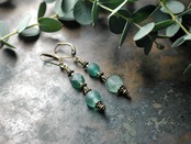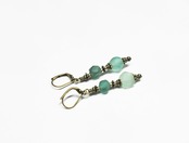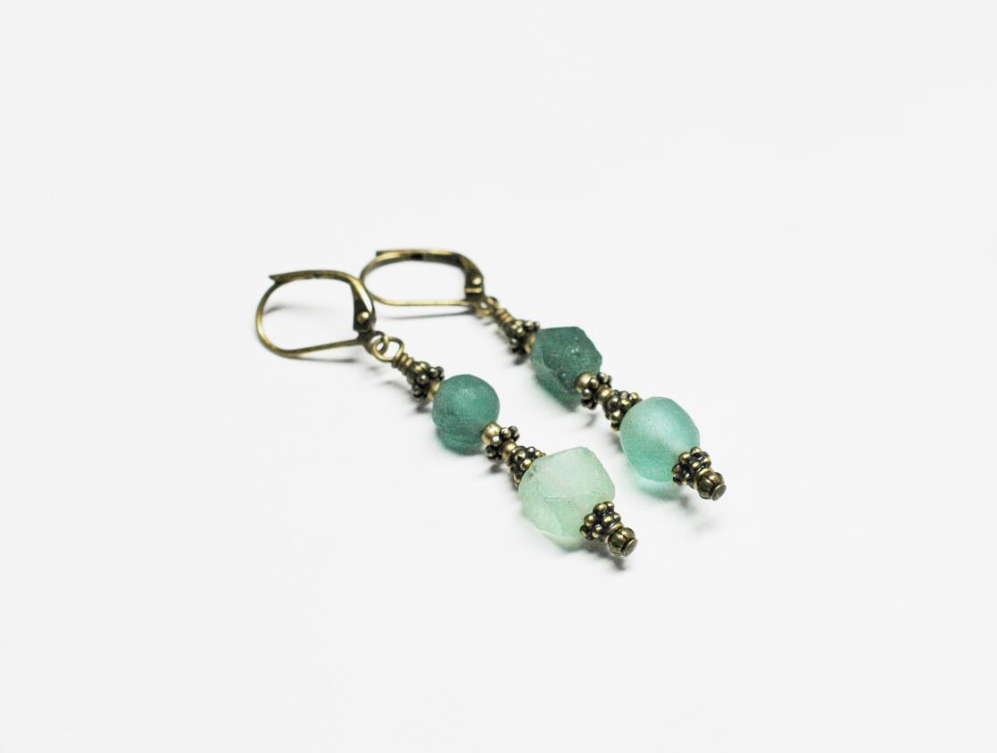 多面体とまん丸のローマングラスを繋げたピアスです。