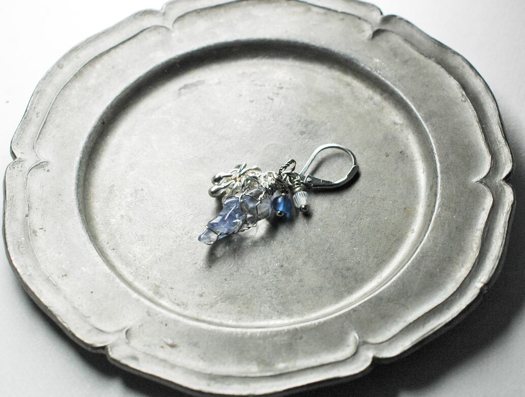 素材:デュモルチェライトインクォーツ(ワイヤーはステンレス)、カレンシルバー、ガラス