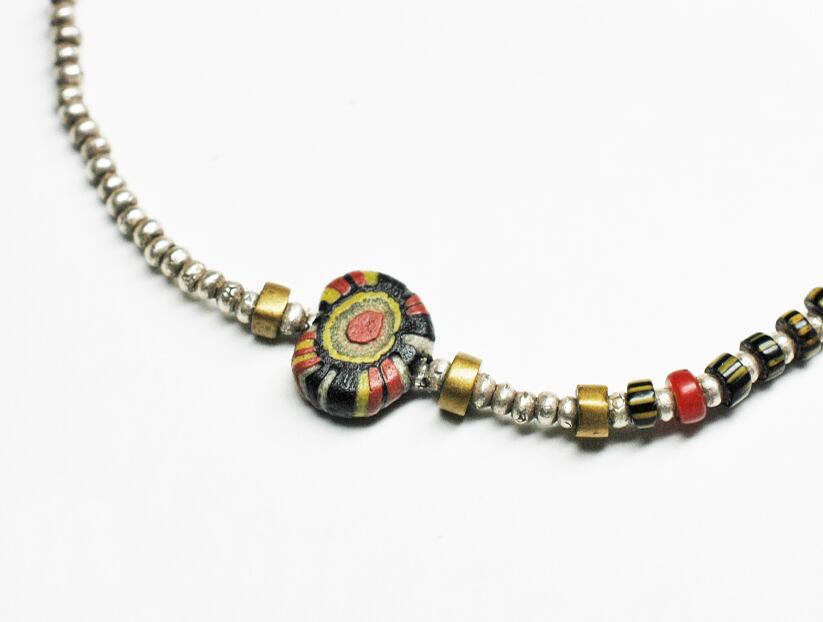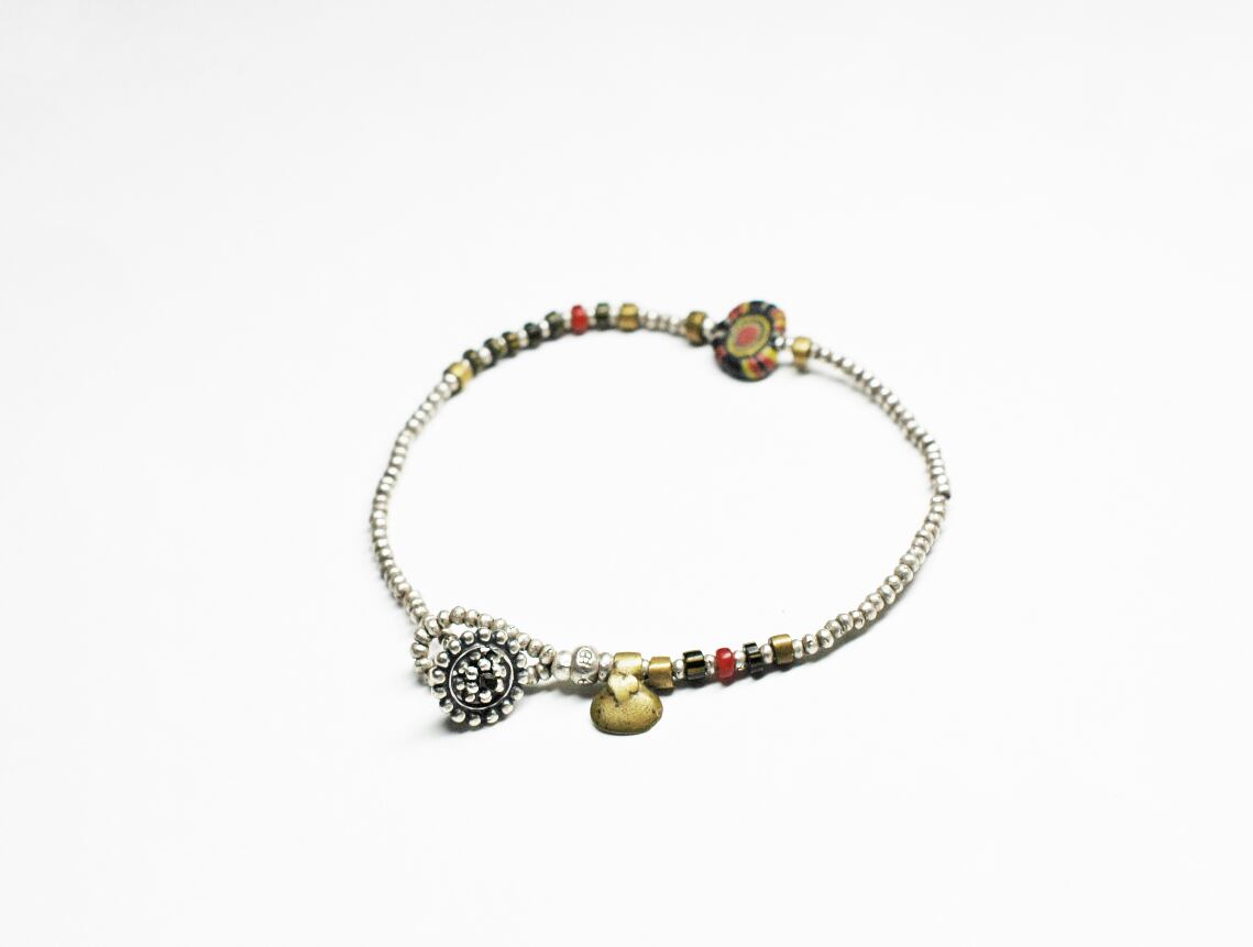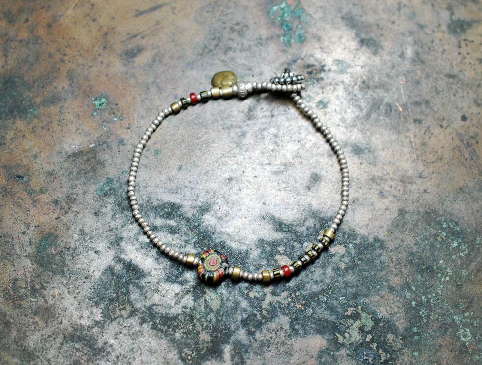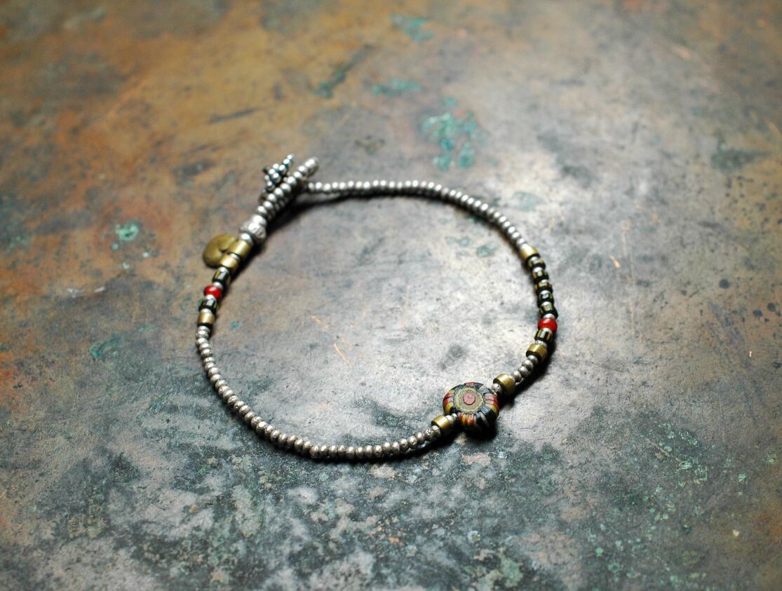 古代ローマンモザイクビーズとカレンシルバーの華奢なブレス