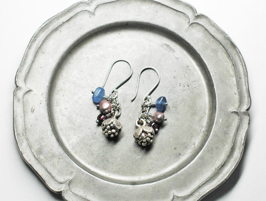 素材:カイヤナイト、ガーネット、バロックパール、カレンシルバー