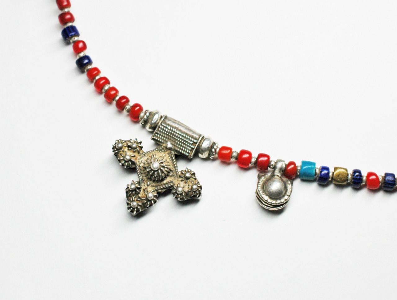 ベルベル族のトップをアンティークのホワイトハーツで繋いだネックレスです。