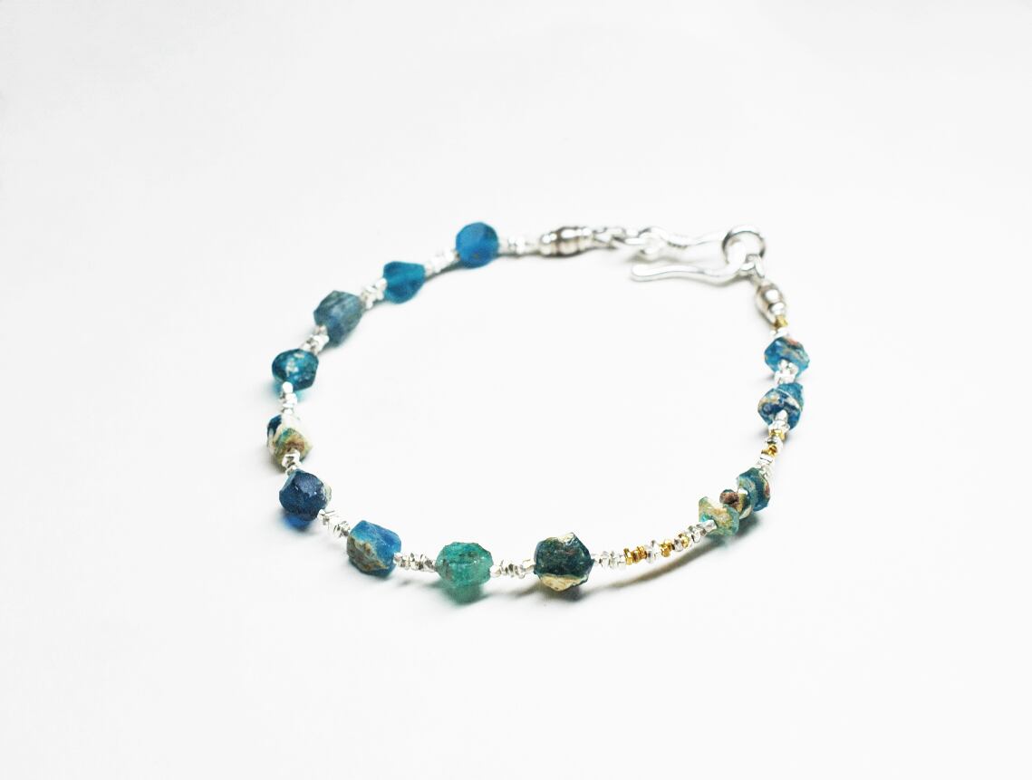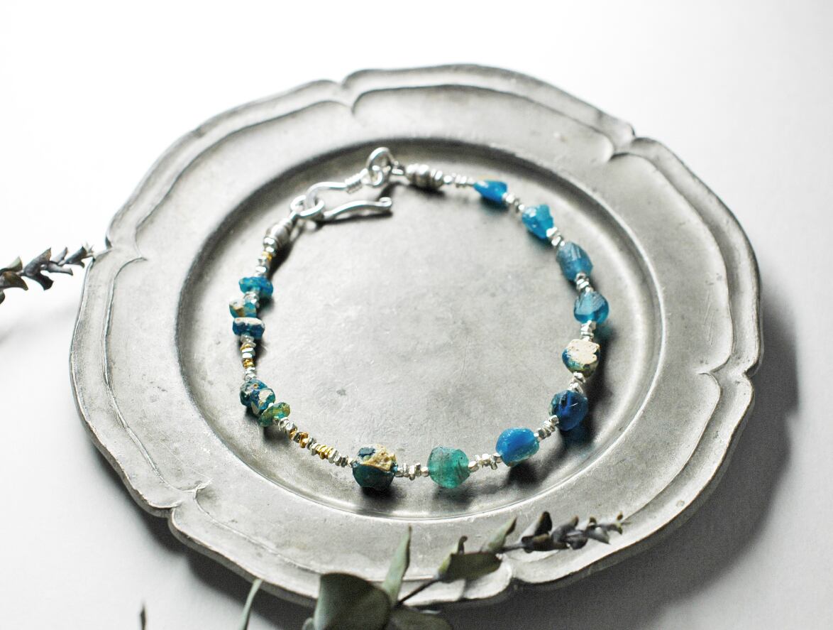ブルーローマングラスと煌めくカレンシルバーのブレス