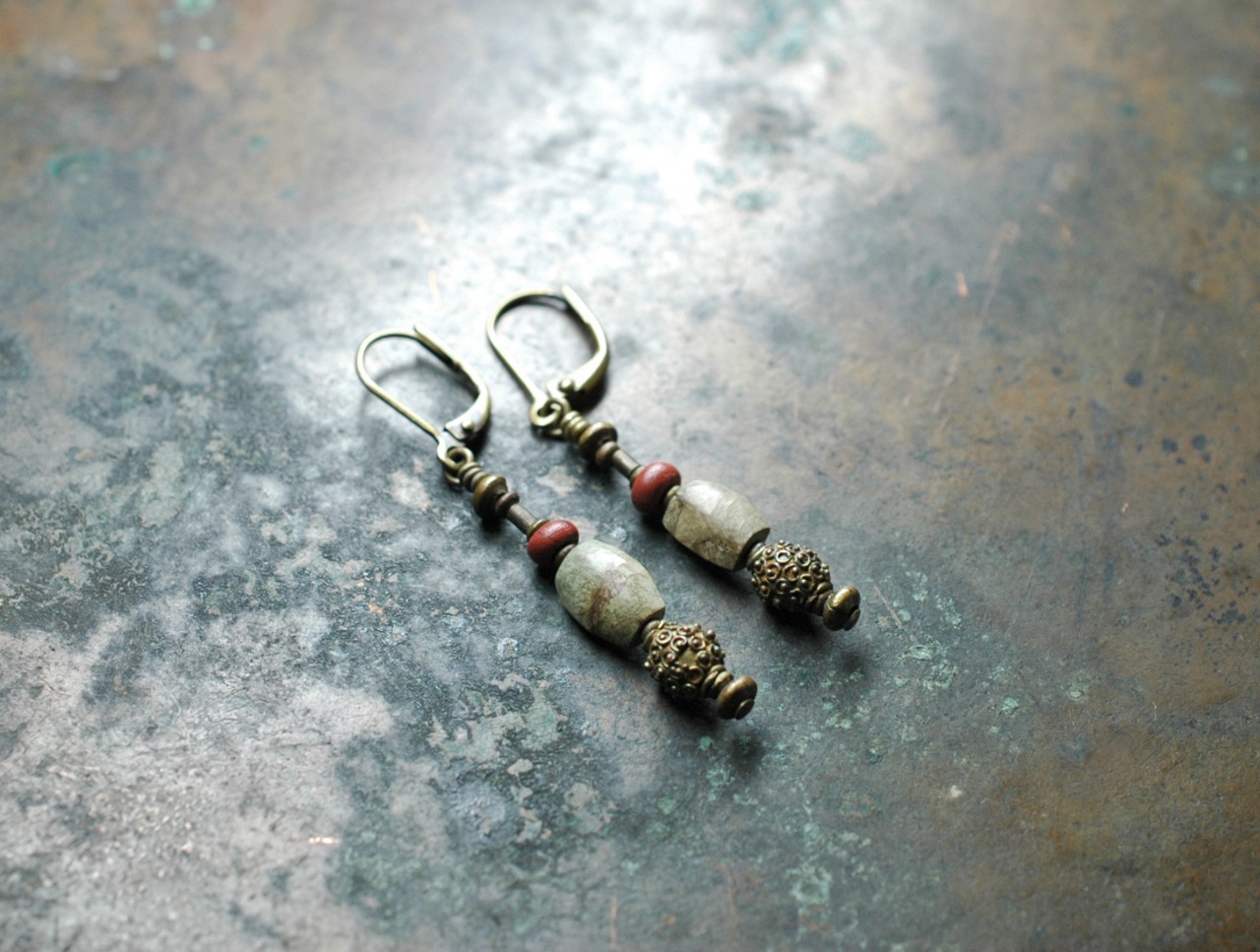 パキスタンターコイズとツブツブビーズ、アンティークビーズの渋いピアス