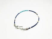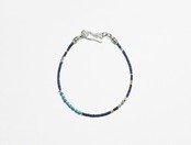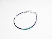小さなラピスラズリと、ターコイズブルーのホワイトハーツ、さざれ型のカレンシルバービーズなどを繋げたブレスです。
