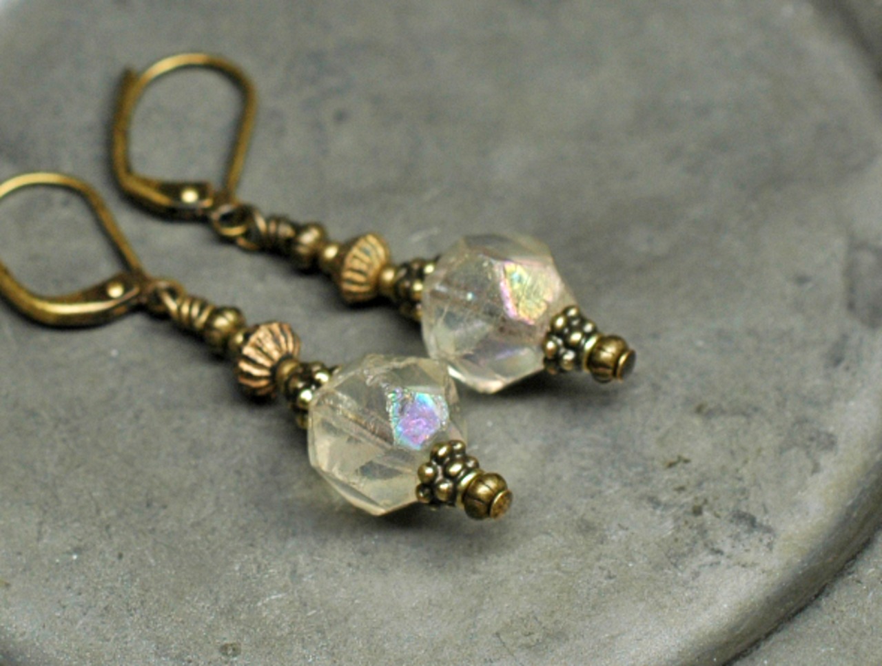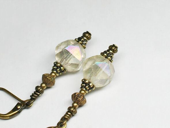 ヴィンテージオーロラチェコビーズととメタルビーズのピアス