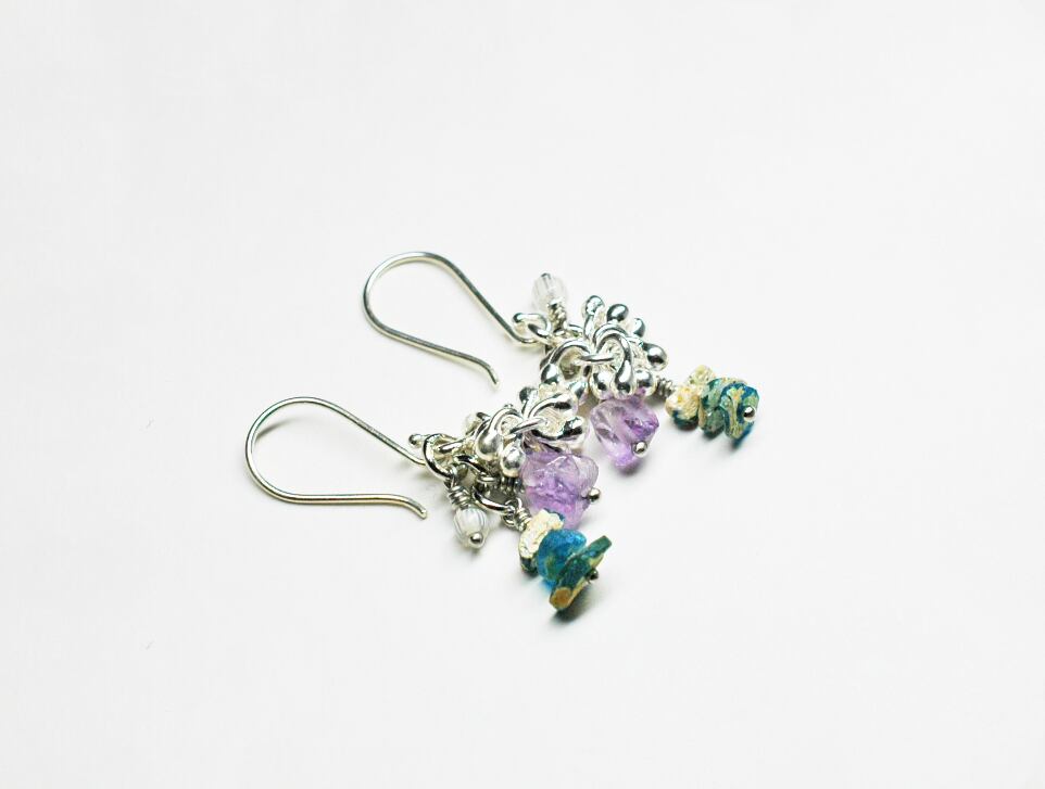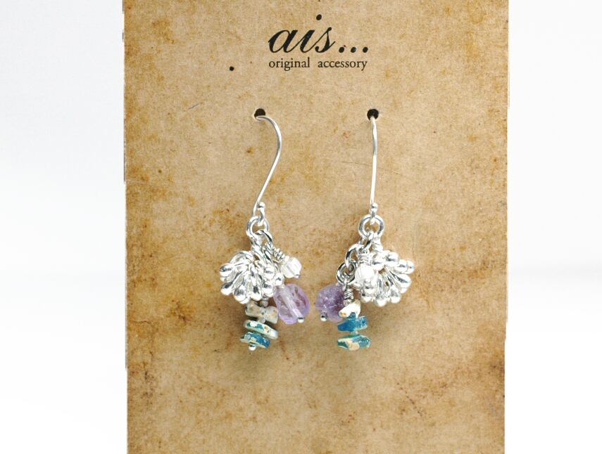 しゃらりとしたカレンシルバーと銀化ローマングラス、アメジストのピアス