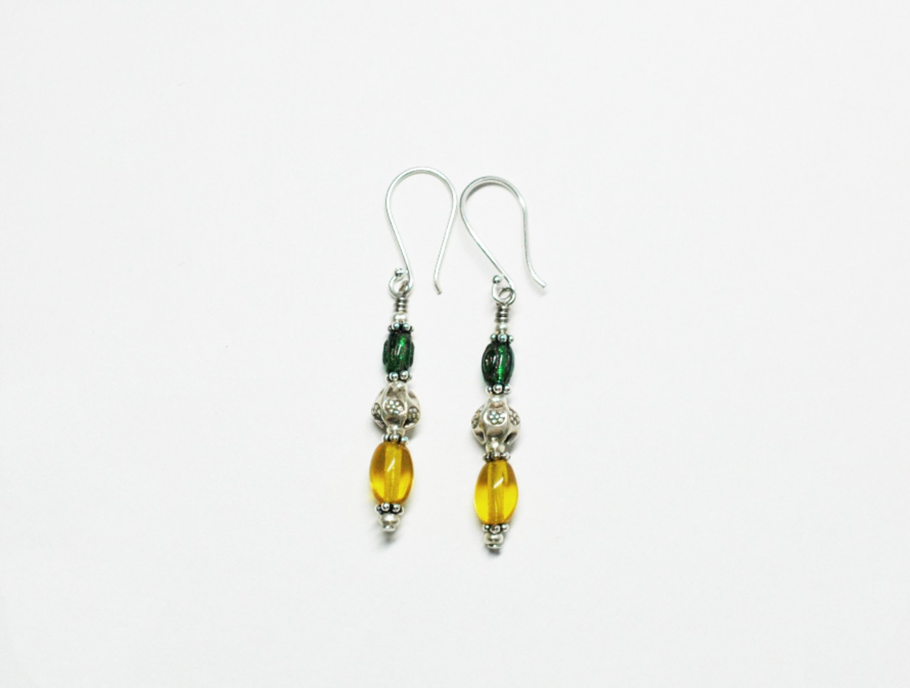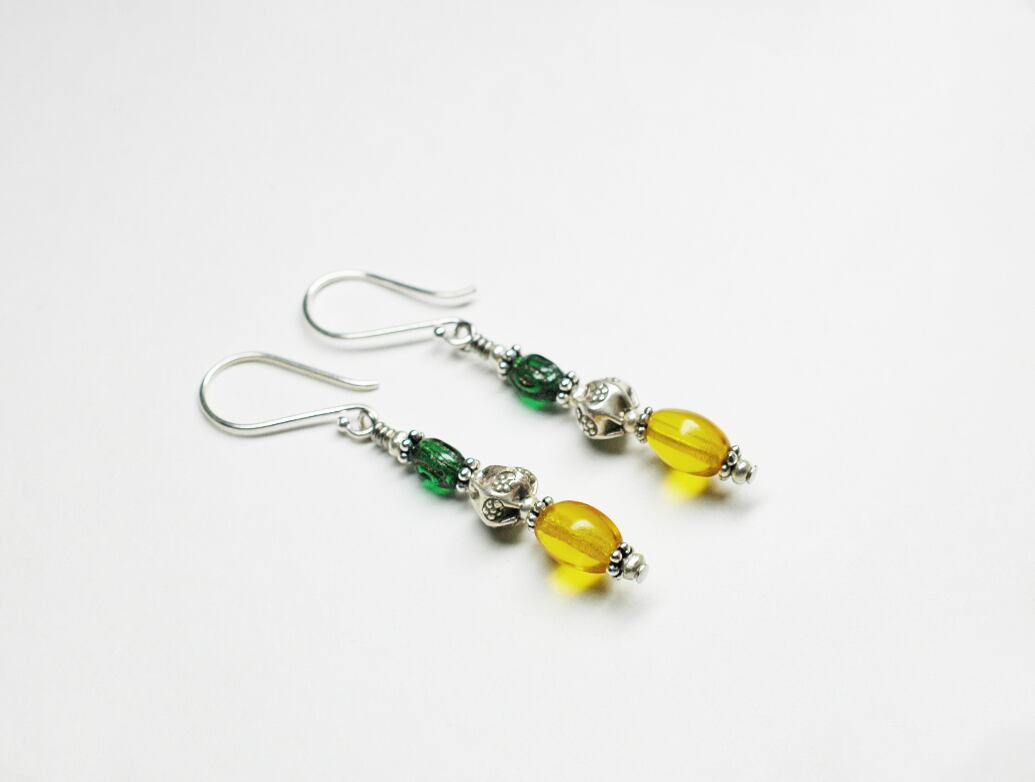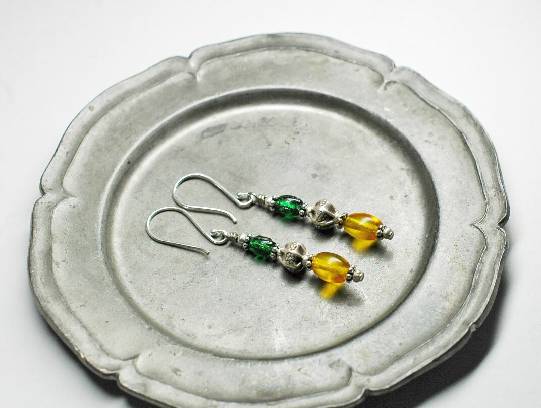 ハニー&グリーンカラーのボヘミアアンティークビーズピアス