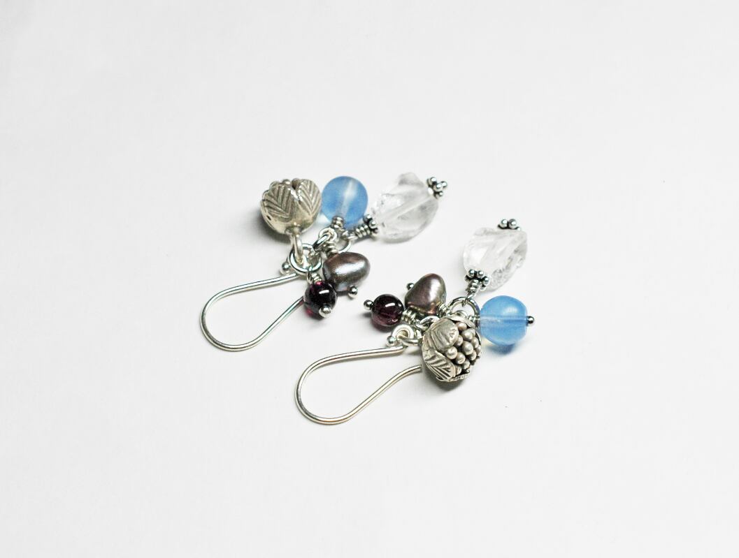 素材:カレンシルバー、水晶、ガーネット、バロックパール、ガラス