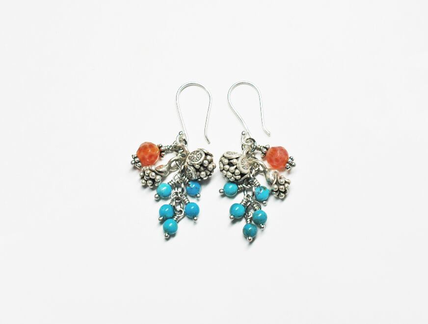 コロンと丸いお花とたわわなカレンシルバーとターコイズ、ファイアーアゲートのピアス