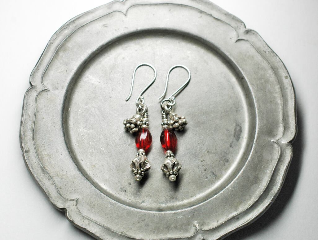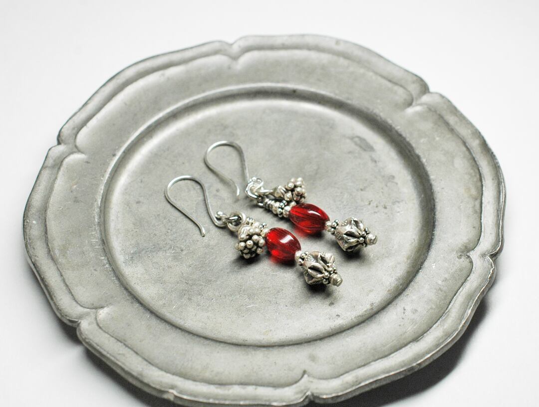 深紅ボヘミアアンティークビーズとカレンシルバーのピアス