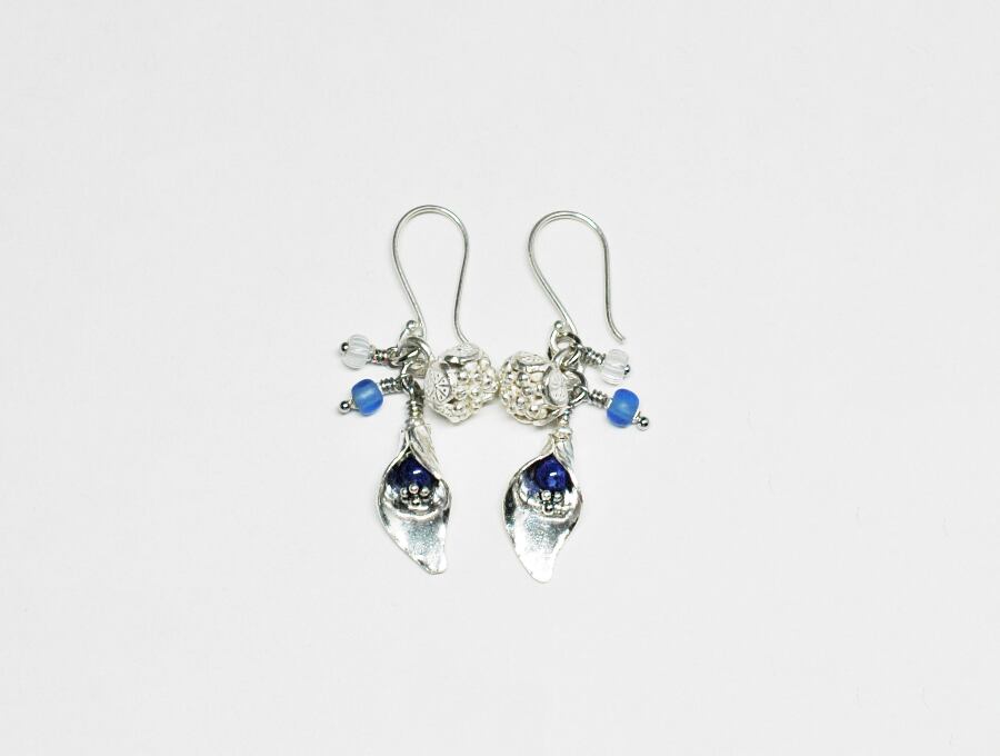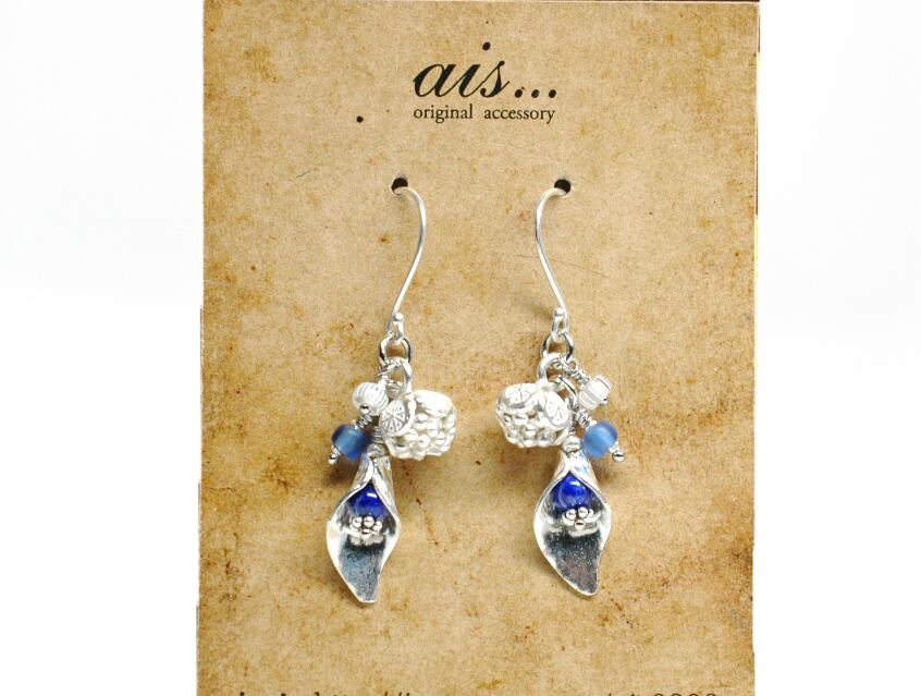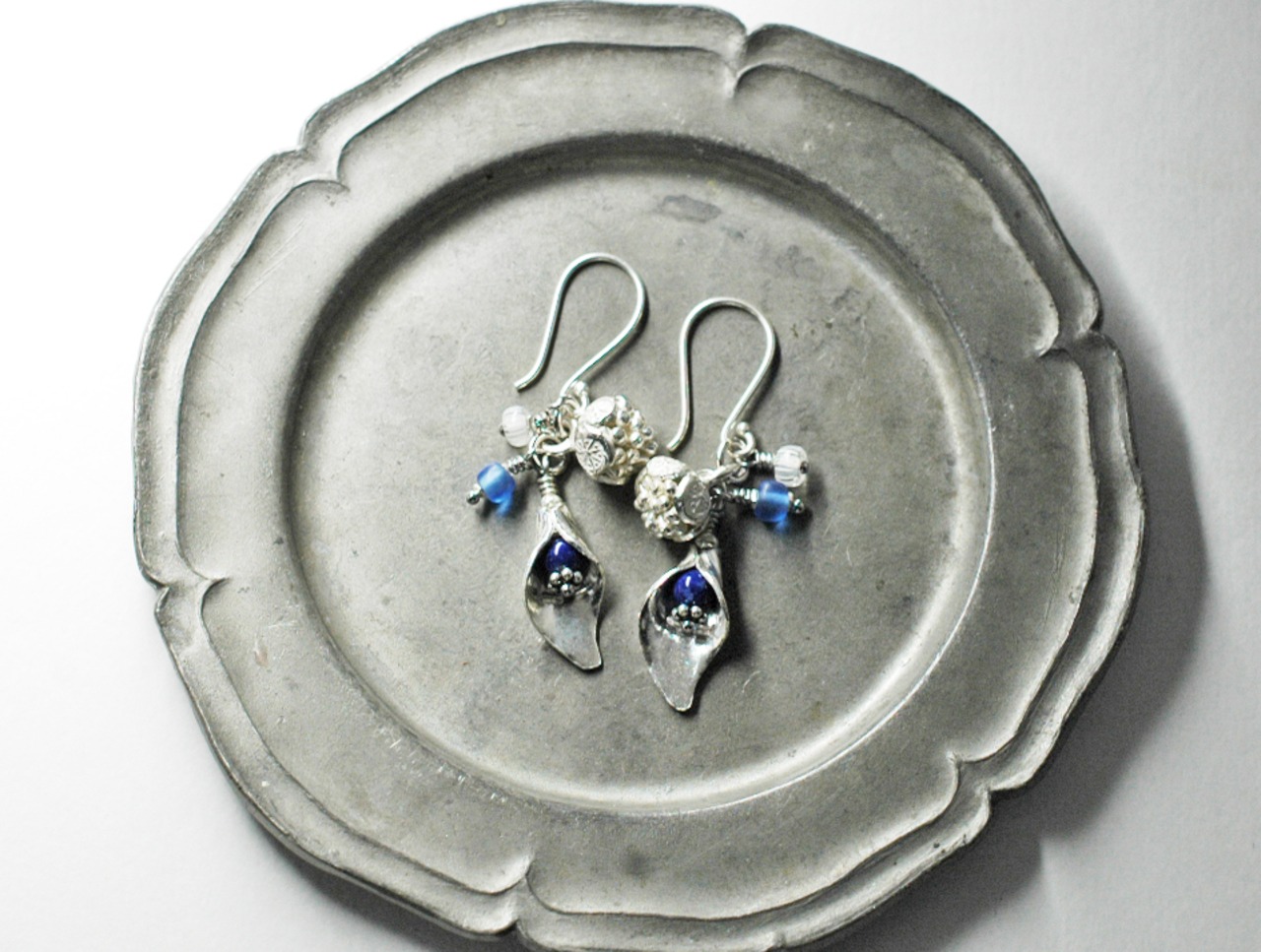 葉っぱを丸めたようなカレンシルバーに、丸い小さなラピスラズリをあしらいました。