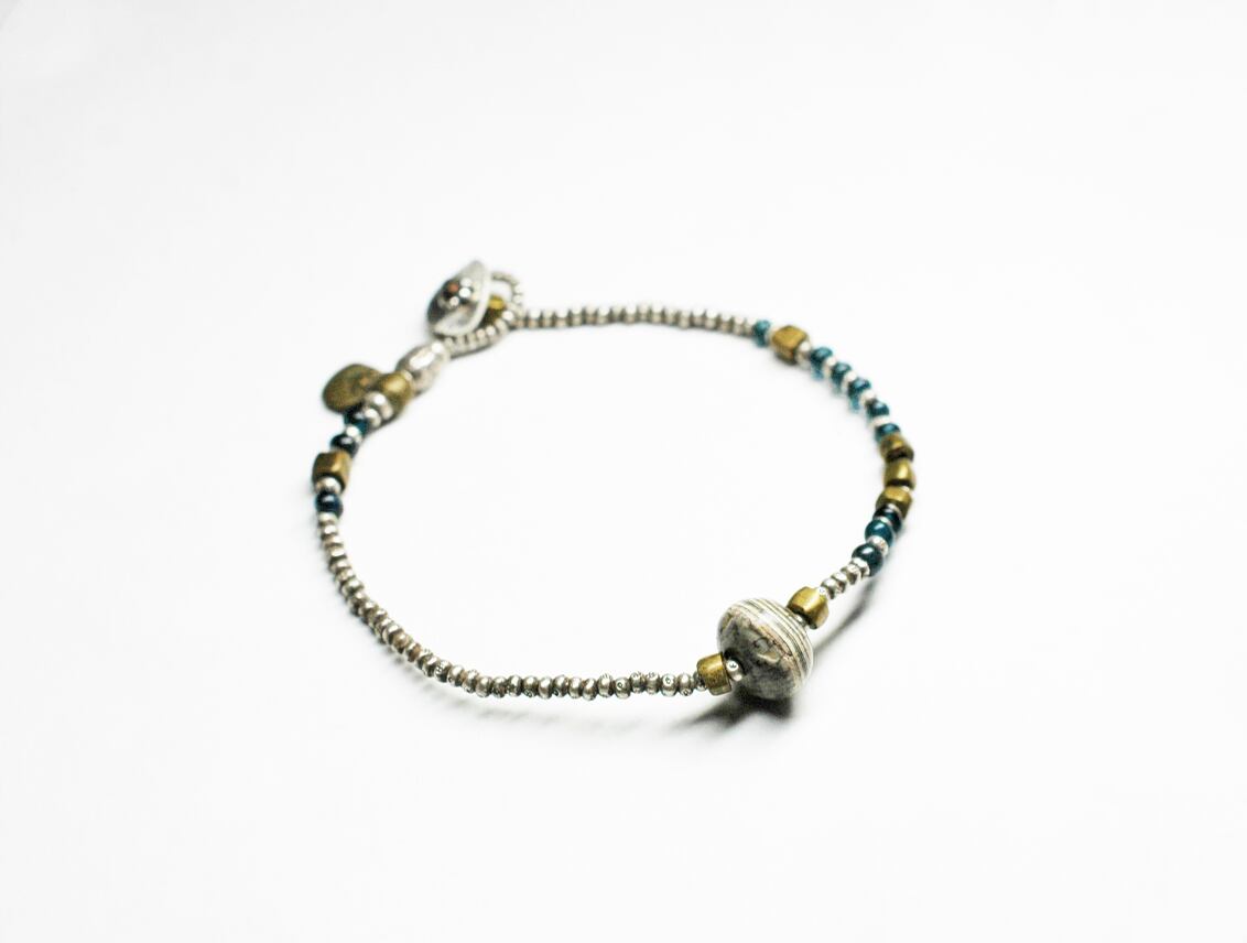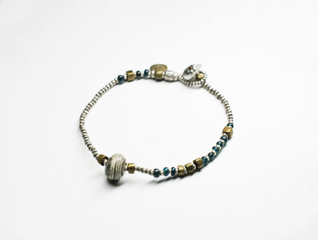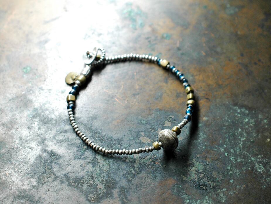 唯一無二の古代瑪瑙とインディゴブルービーズ、カレンシルバーのブレス