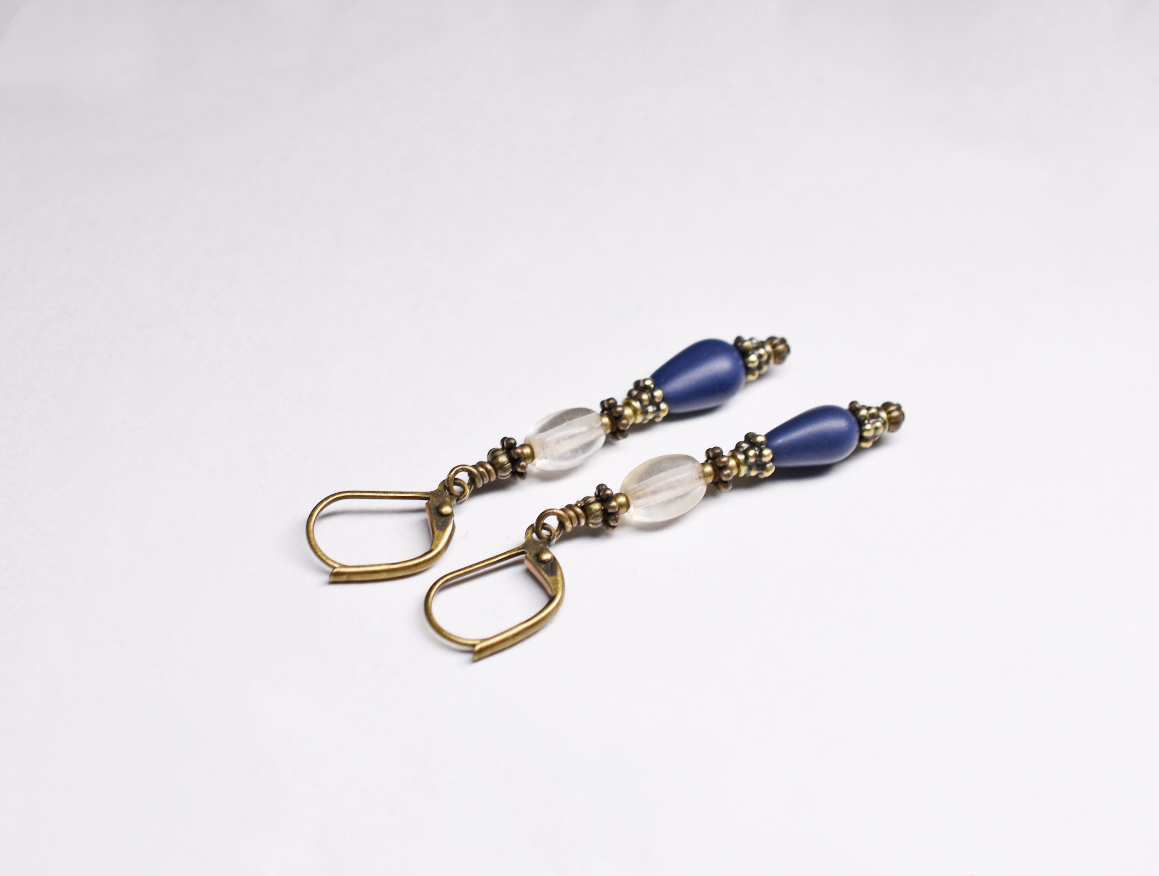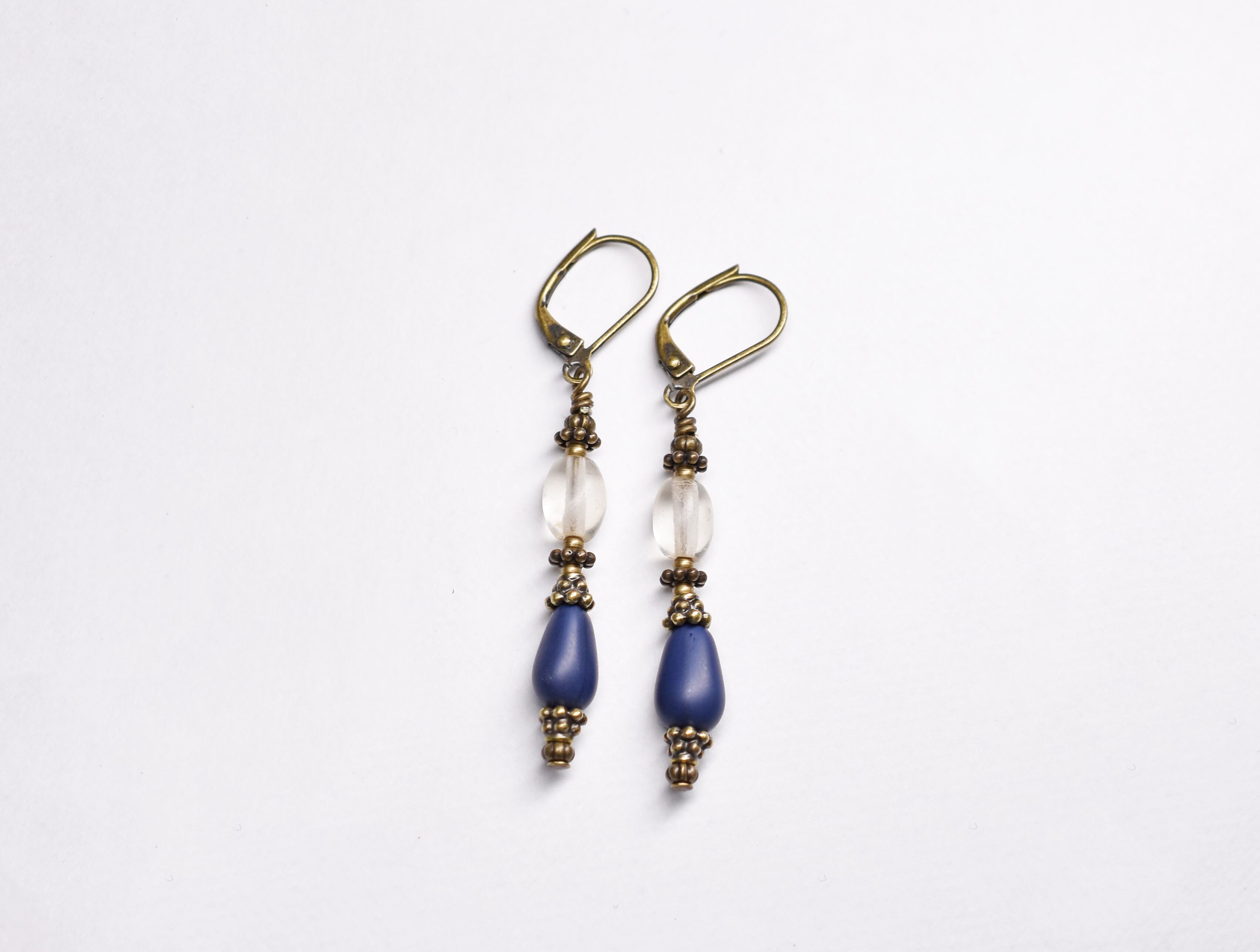 チェコ産のアンティークビーズと、ドイツのヴィンテージガラスビーズを繋いだピアスです。