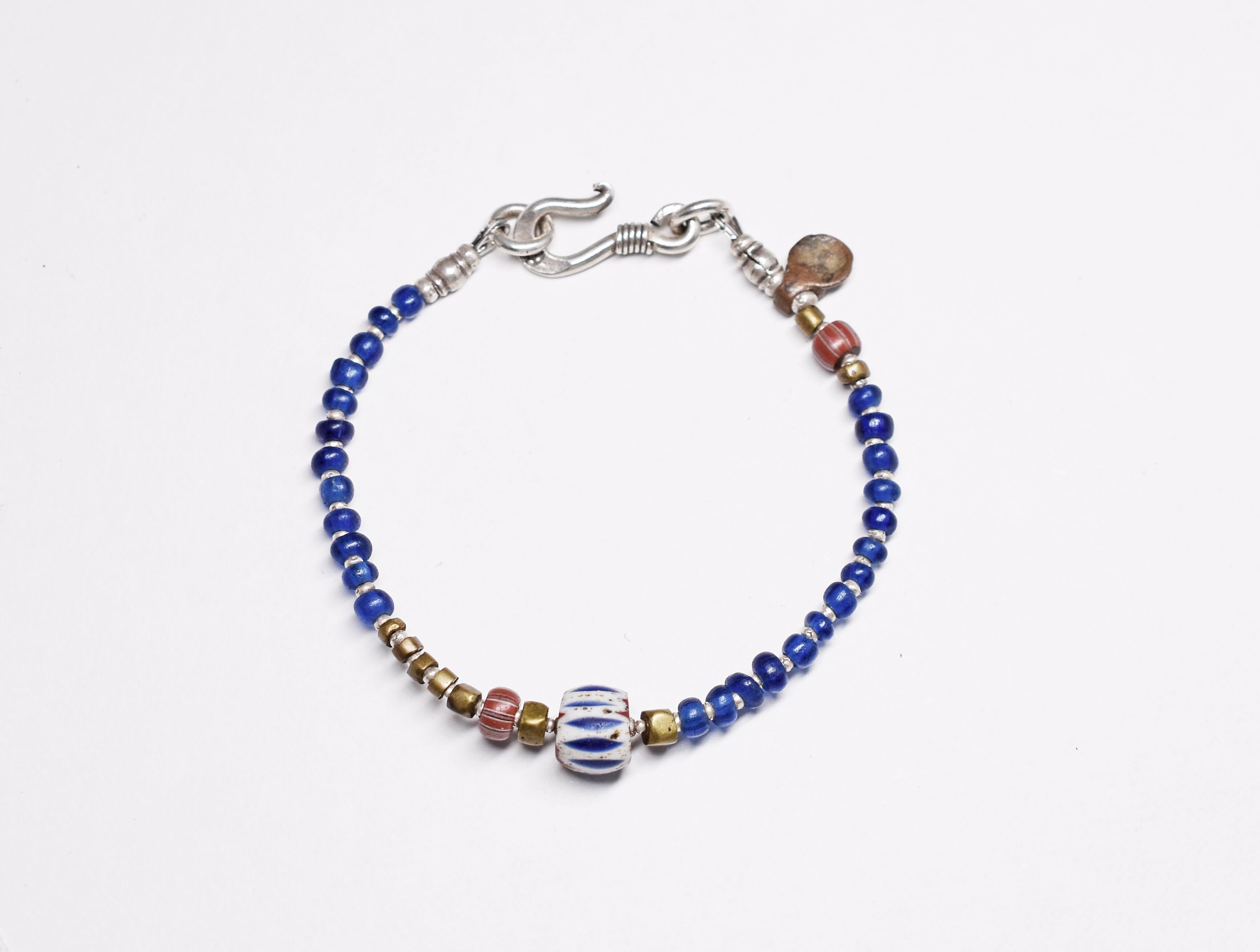 7層シェブロンビーズとoldオリッサブラス、ブルーアンティークビーズのブレス