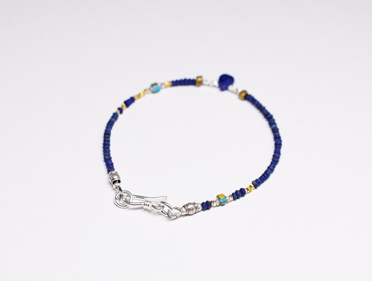 ラピスとターコイズブルーホワイトハーツ、カレンシルバーの華奢なブレス