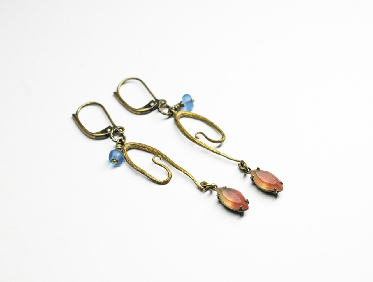 ヴィンテージのビーズと、真鍮パーツを合わせた少し長めのピアスです。