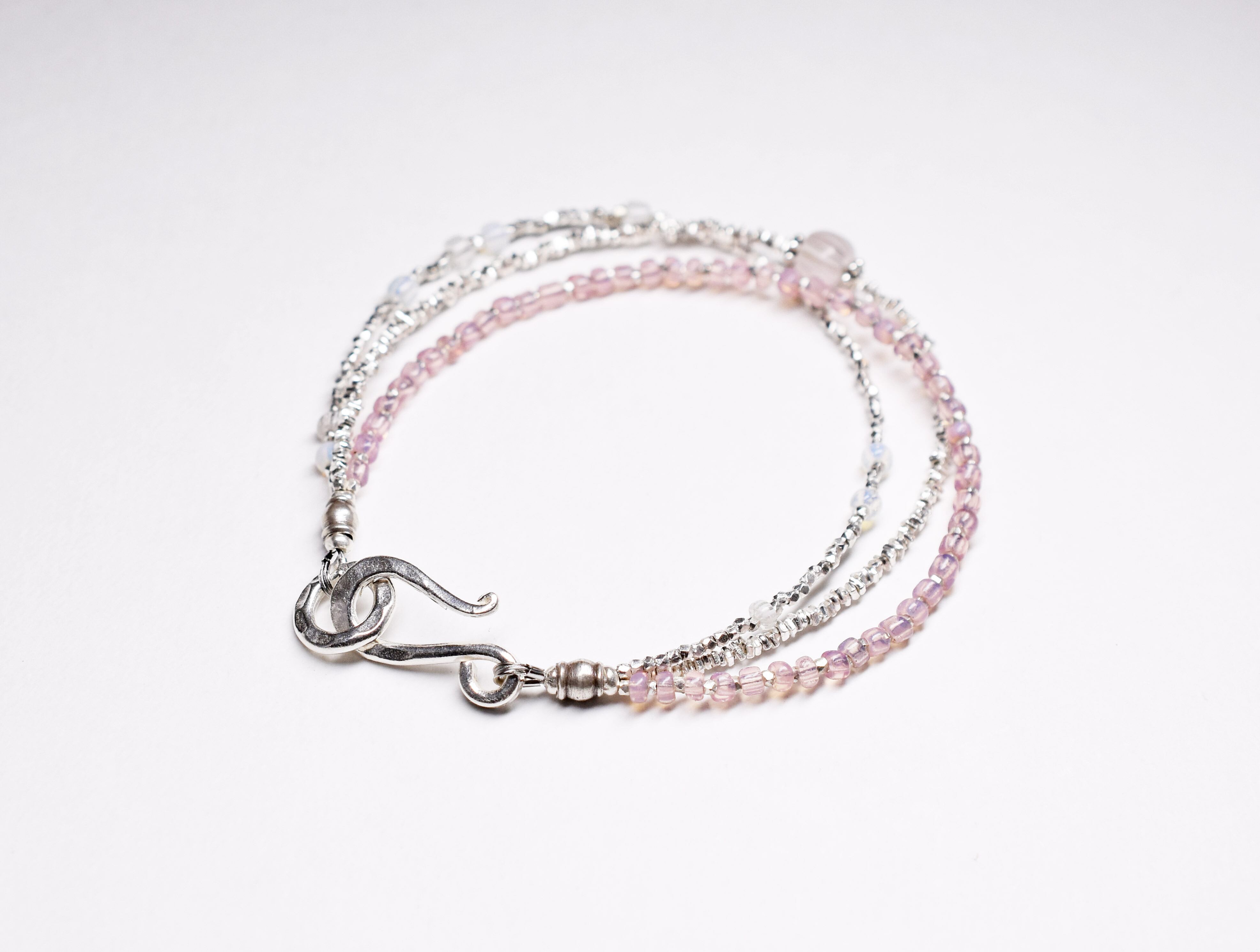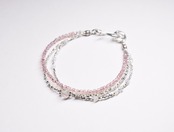 グーズベリーとオパールピンクビーズ、煌めくカレンシルバーの3連ブレス